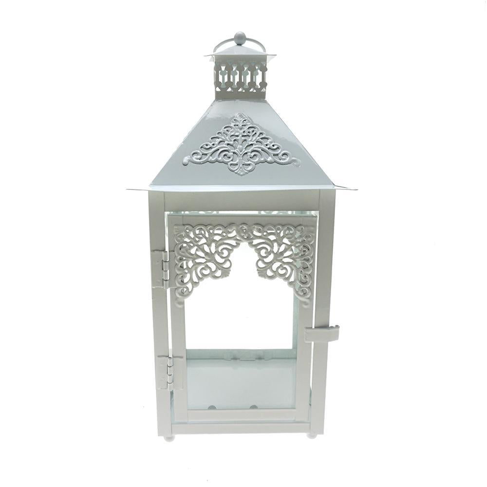 Beautify any indoor or outdoor space with this Antique Scroll Swirl Metal Lantern. Features a beautifully crafted frame, scroll swirl designs, glass sides, an easy to open door with latch, and a round hook on top for hanging. Great to accent any garden or patio space, even hang by your front door. Incorporate into a vintage or rustic wedding decor. Makes for a great centerpiece, simply add a candle, or hang throughout the venue.