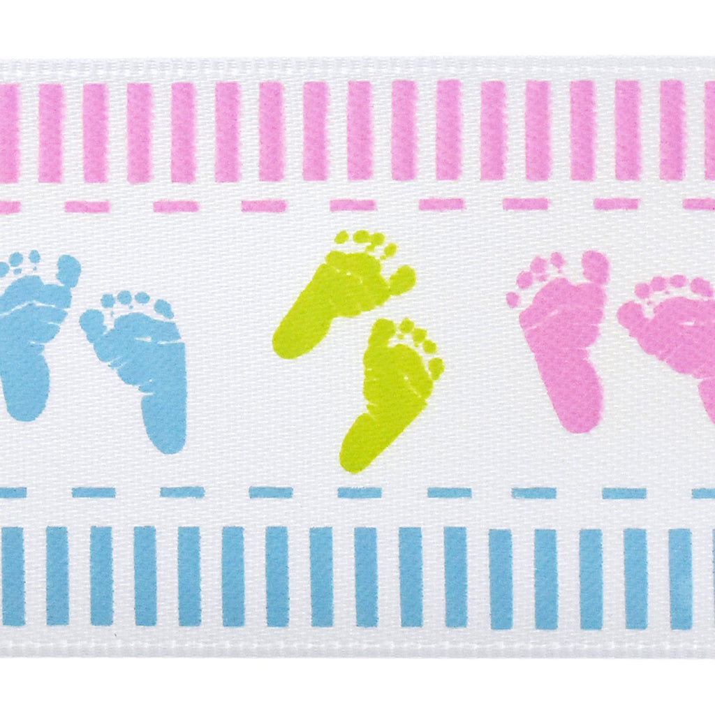 Baby Footprint Pastel Satin Ribbon, White, 1-1/2-Inch, 3-Yard