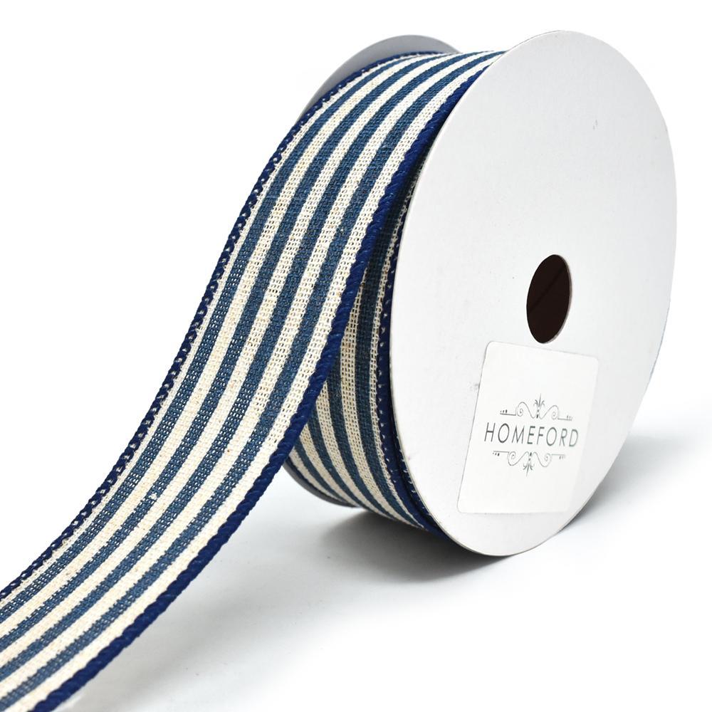 Cabana Stripes Canvas Wired Ribbon, 1-1/2-Inch, 10-Yard