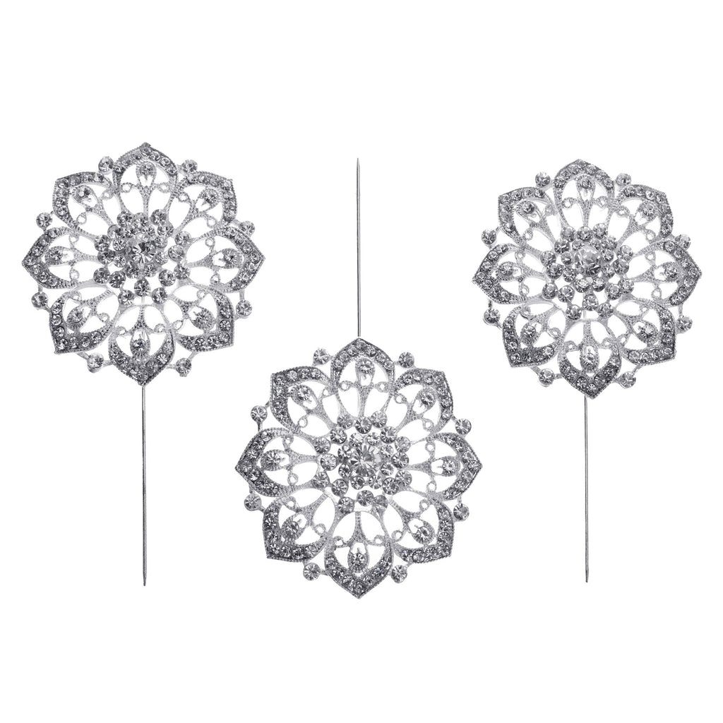 Blooming Flower Rhinestone Pins, 4-1/4-Inch, 3-Count