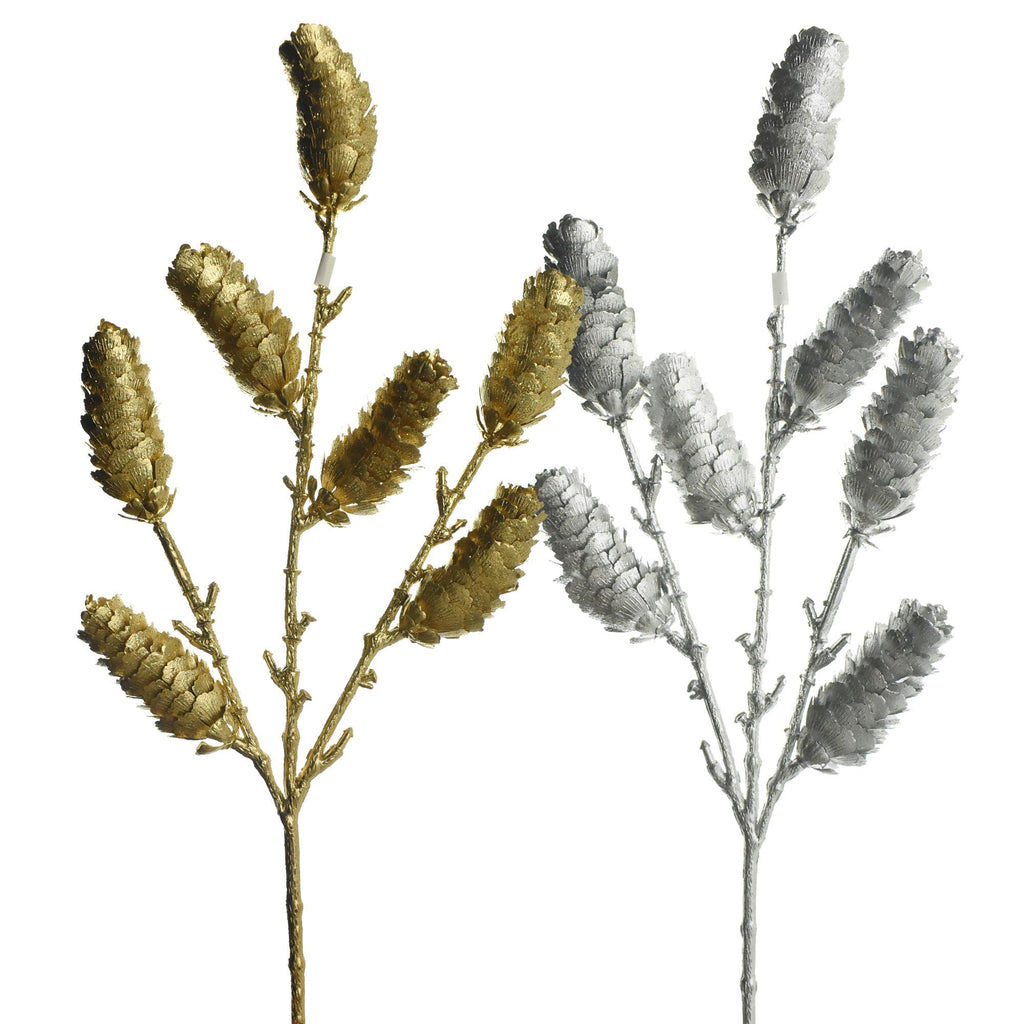 Artificial Glittered Metallic Pine Cone Pick, 15-Inch