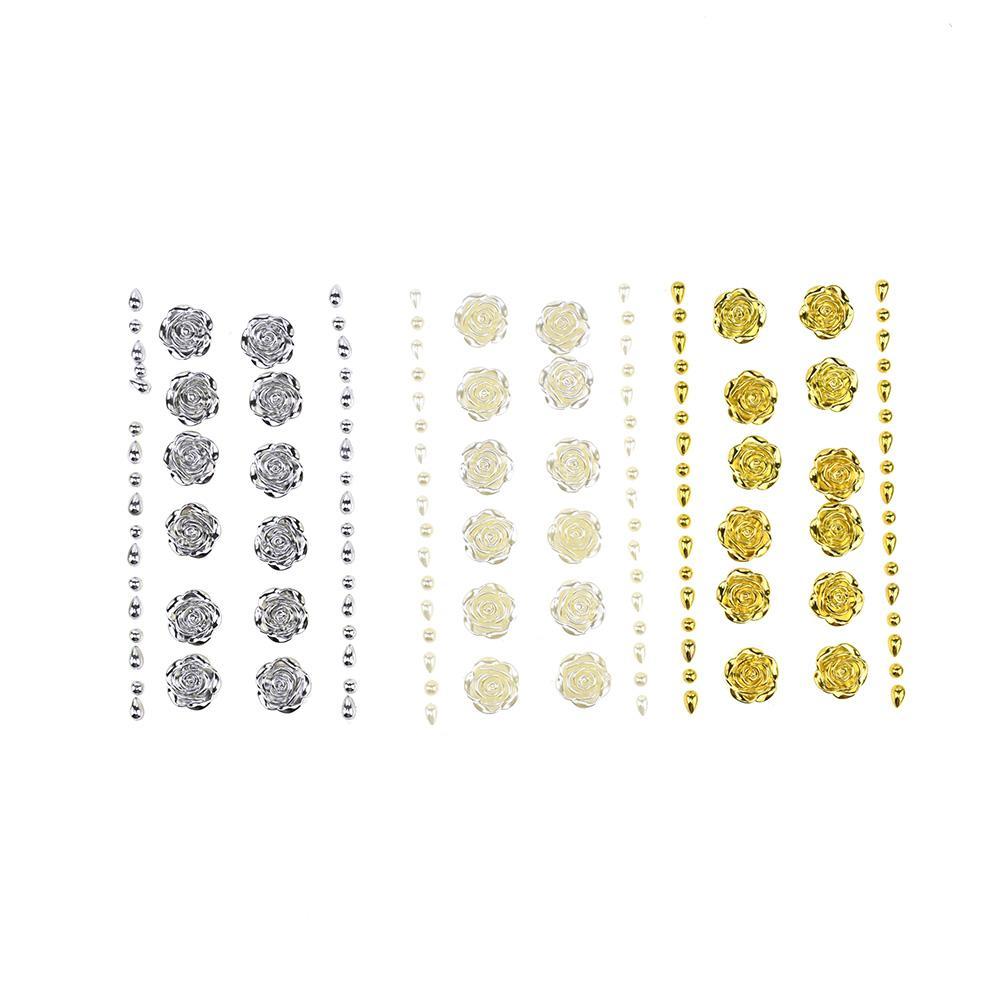 Pearlescent Rhinestone Rose Stickers, 3/4-Inch, 14-Piece