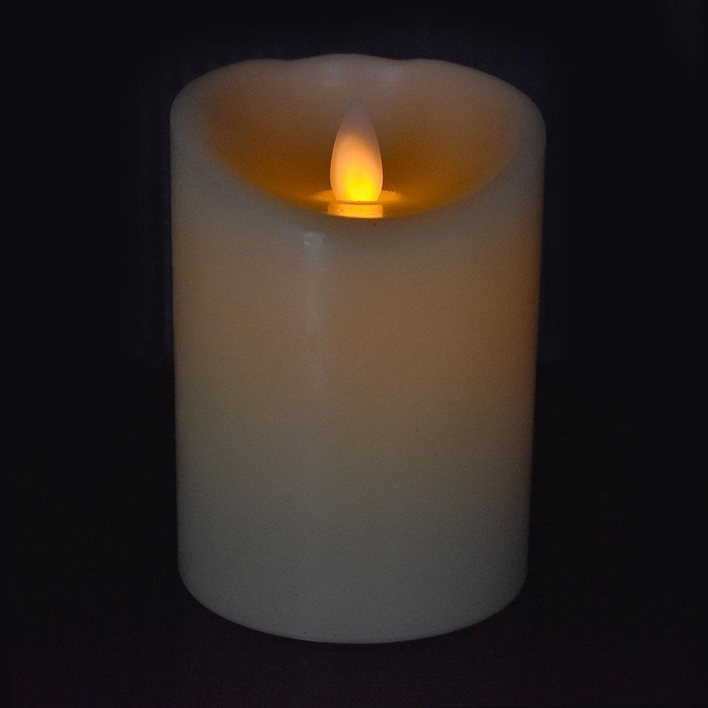 Create a warm and realistic glow effect for your home with this elegant LED pillar candle. Features real wax, an On/Off switch at the bottom. and fits most pillar candle holders. No heat, smoke, residue or melted wax. Great to use in a home or office space, even incorporate in a centerpiece decor for your next event. Safety battery operated powered by 3x AA batteries (not included).