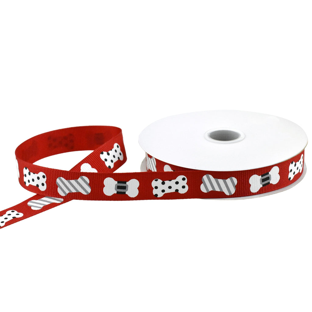 Christmas Doggy Bones Grosgrain Ribbon, 5/8-Inch, 10-Yard - Red
