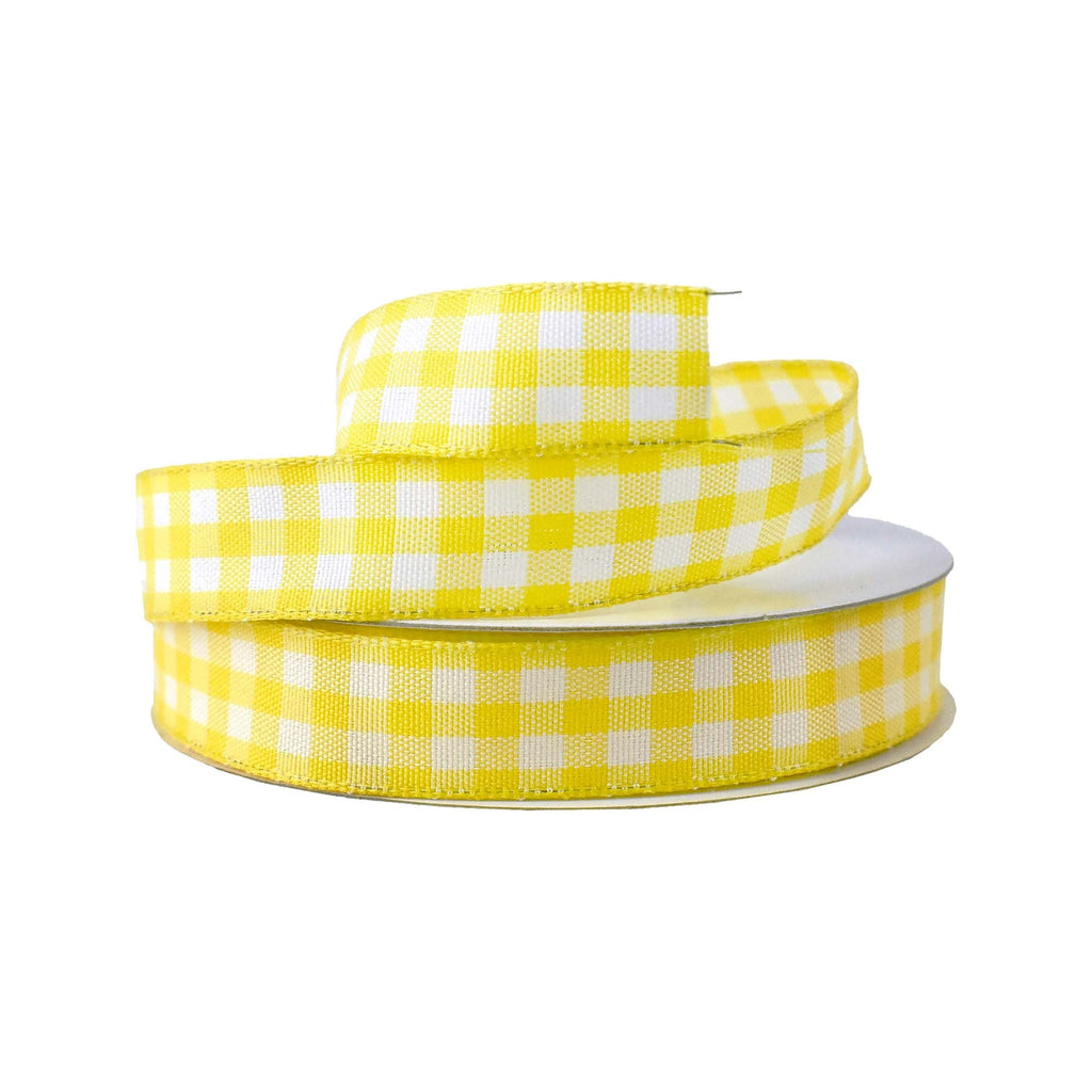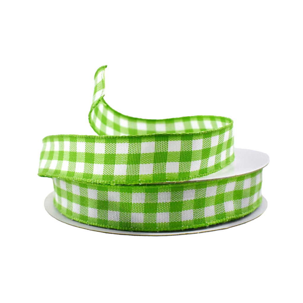 Add your own touch to any project! This ribbon features a classic checkered plaid pattern in a variety of vibrant colors that suit any season and occasion for the perfect finishing touch to any home decor, DIY, or craft project you use these with. Take your decorating or DIY to the next level! Note: Contains wire Length: 10 yd Width: 0.625"