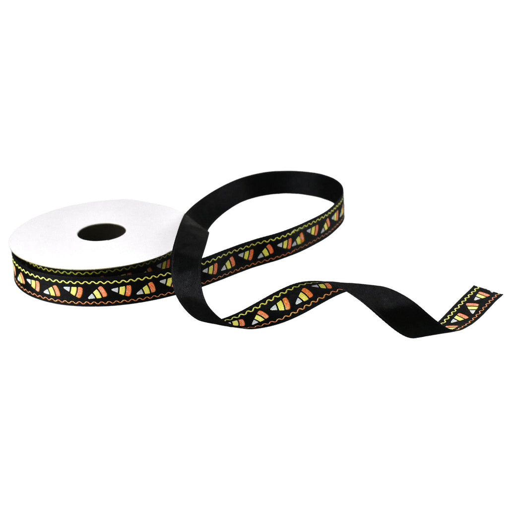 Glittered Candy Corn Satin Ribbon, 5/8-Inch, 10-Yard