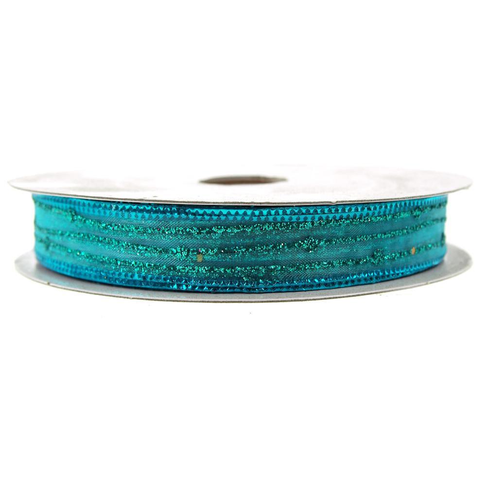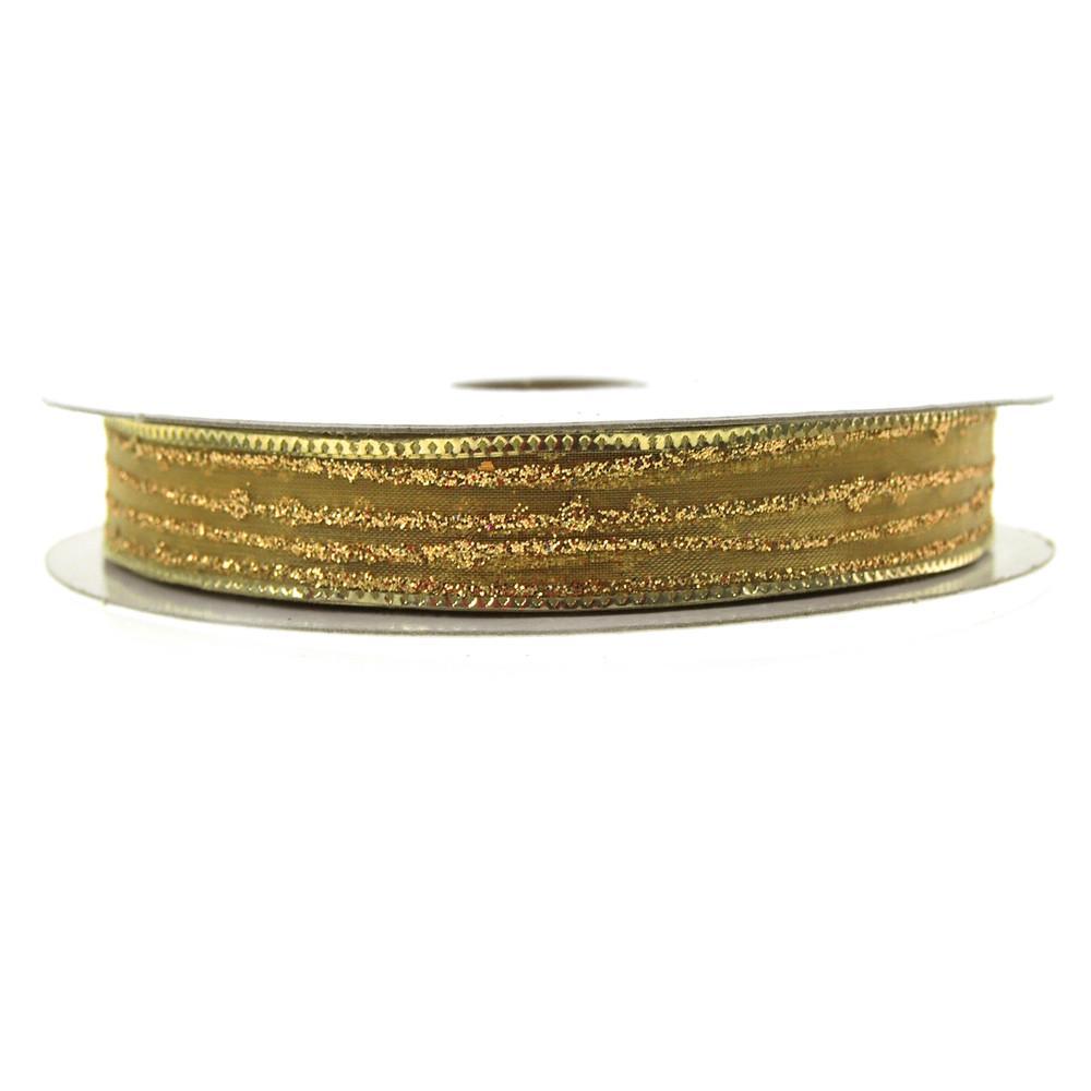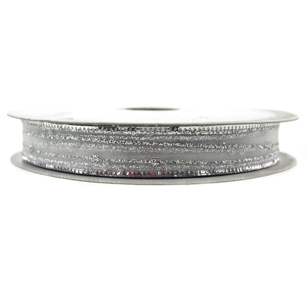 Sheer Glitter Stripe Corsage Ribbon, 5/8-Inch, 50-Yard