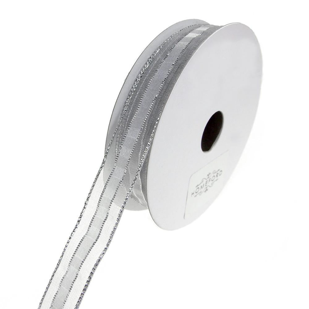 Sheer Metallic Iridescent Edge Natalia Ribbon, 5/8-Inch, 25-Yards