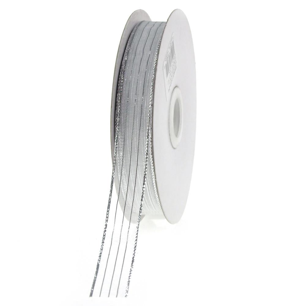 Sheer Metallic Stripe Corsage Ribbon, 5/8-inch, 50-yard