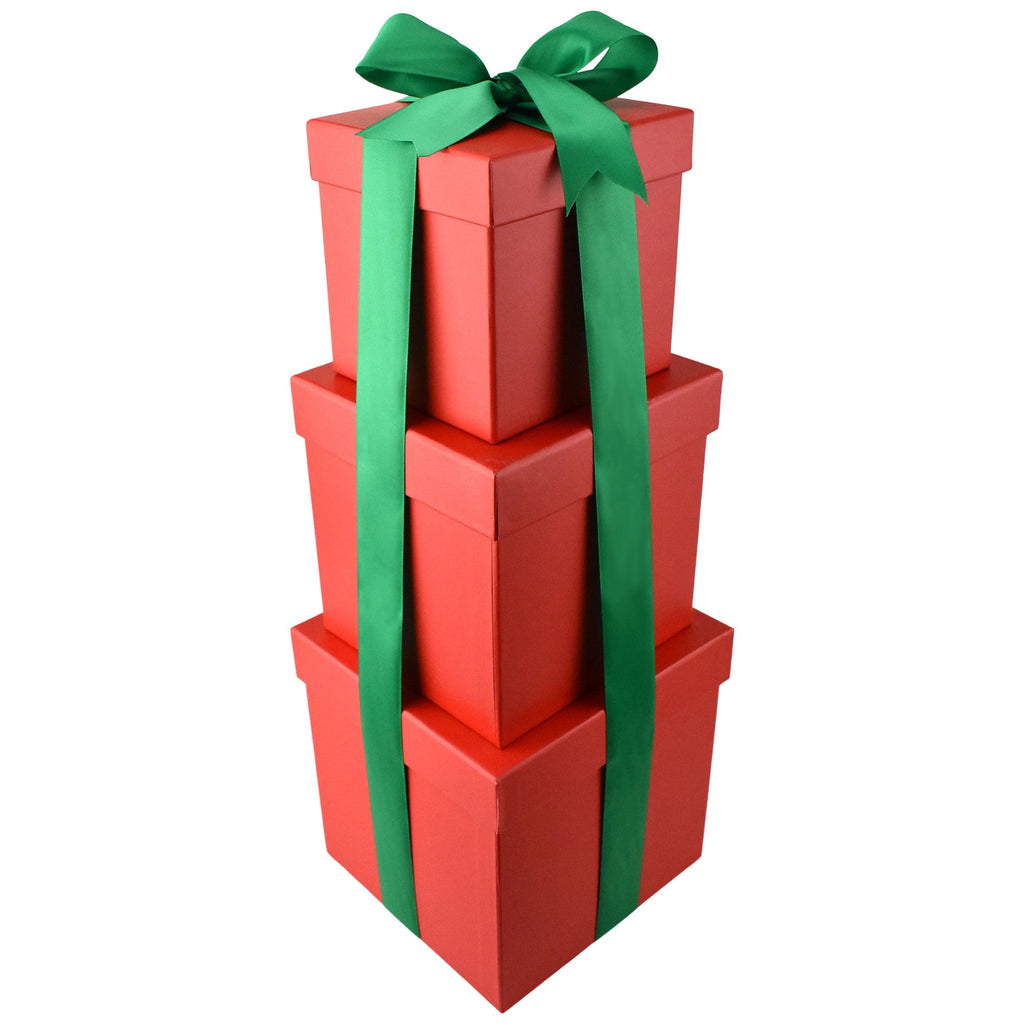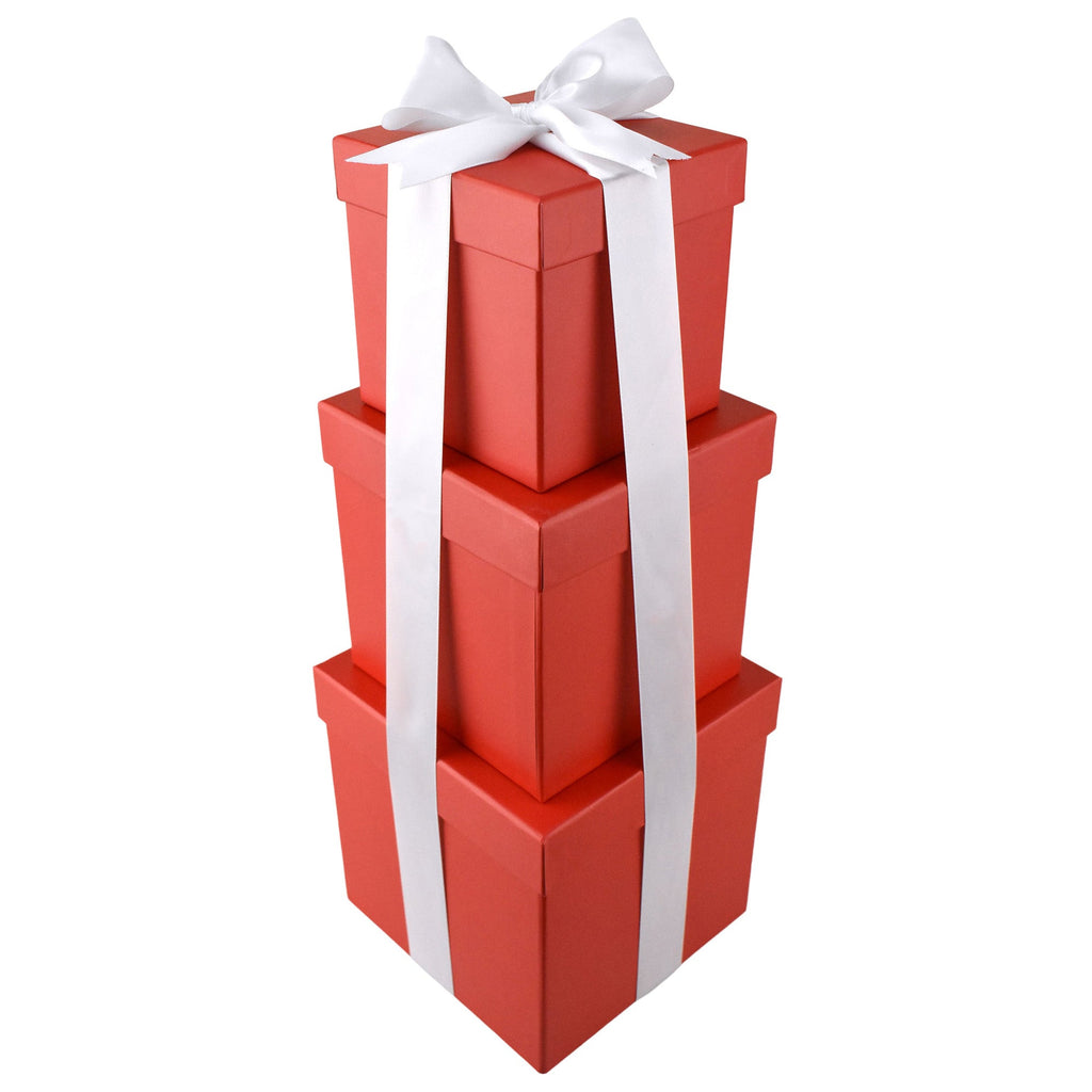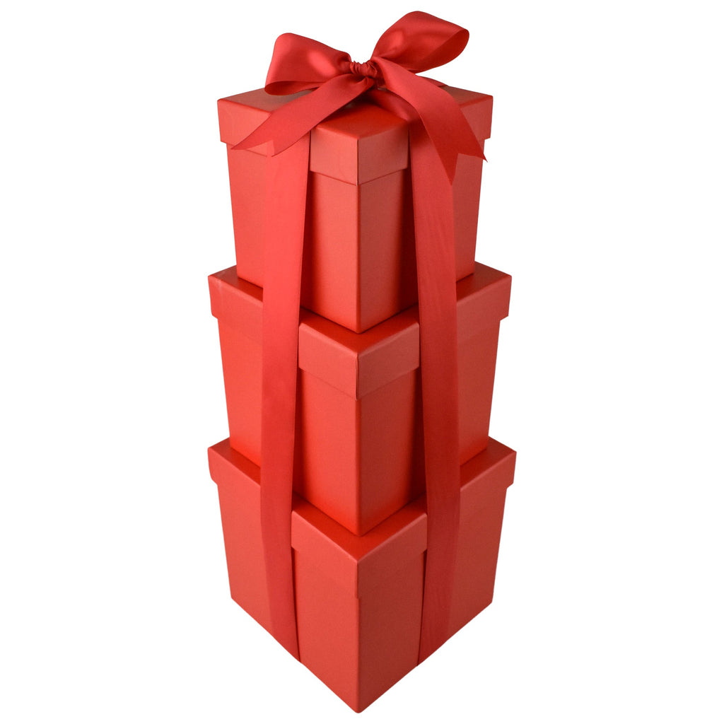 Nested Square Gift Boxes, Red, 5-inch, 6-inch, 7-inch, 3-piece, 1.5-inch Satin Ribbon