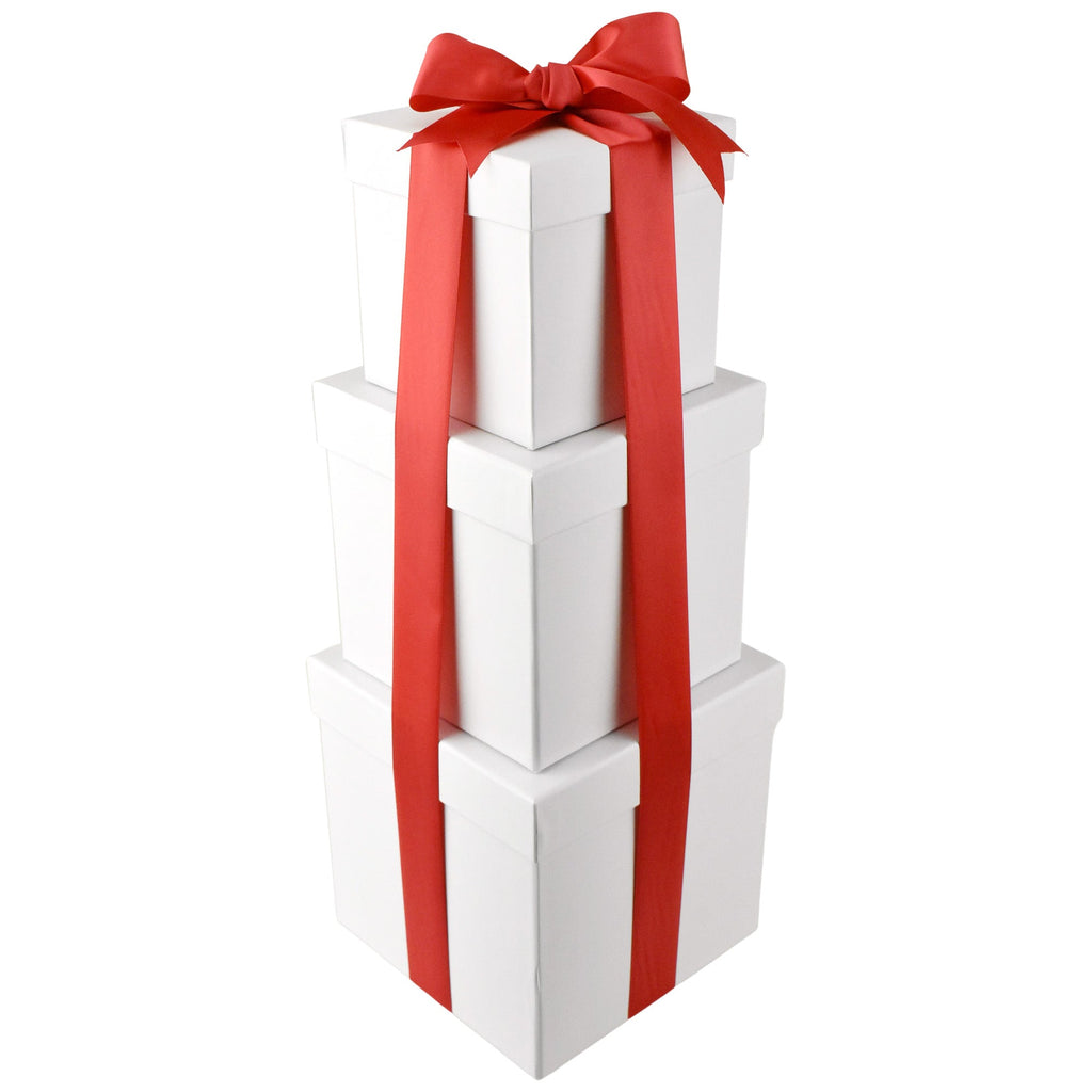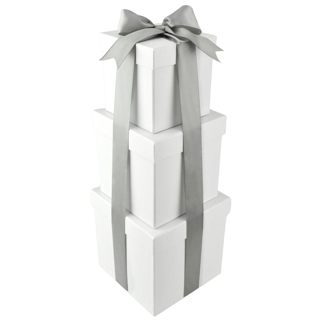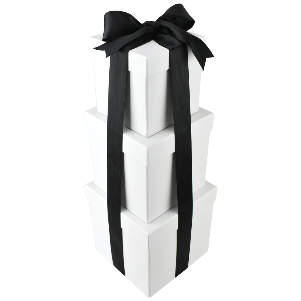 Nested Square Gift Boxes, White, 5-inch, 6-inch, 7-inch, 3-piece, 1.5-inch Satin Ribbon