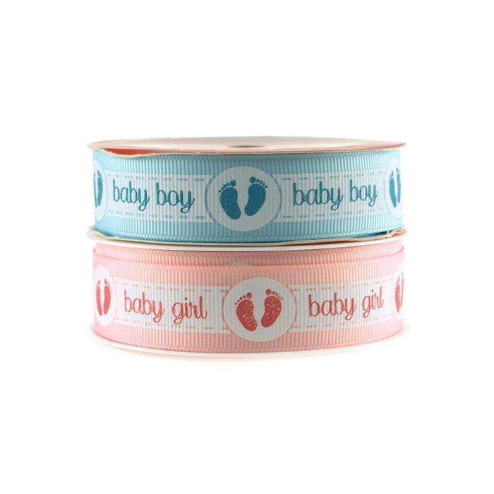 Baby Girl Baby Boy w/ Footprint Grosgrain Ribbon, 7/8-Inch, 3-yard