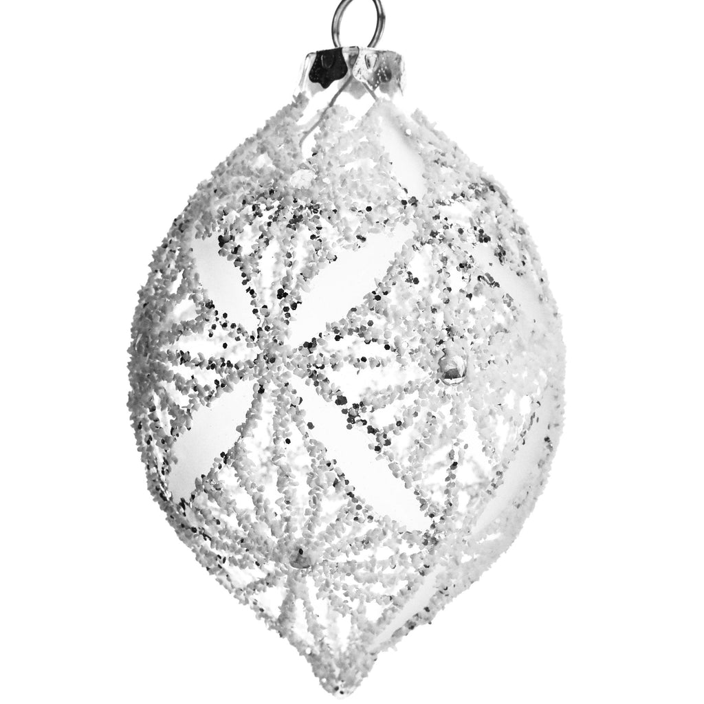 Clear Glass Frosted Teardrop Christmas Ornament, 5-Inch