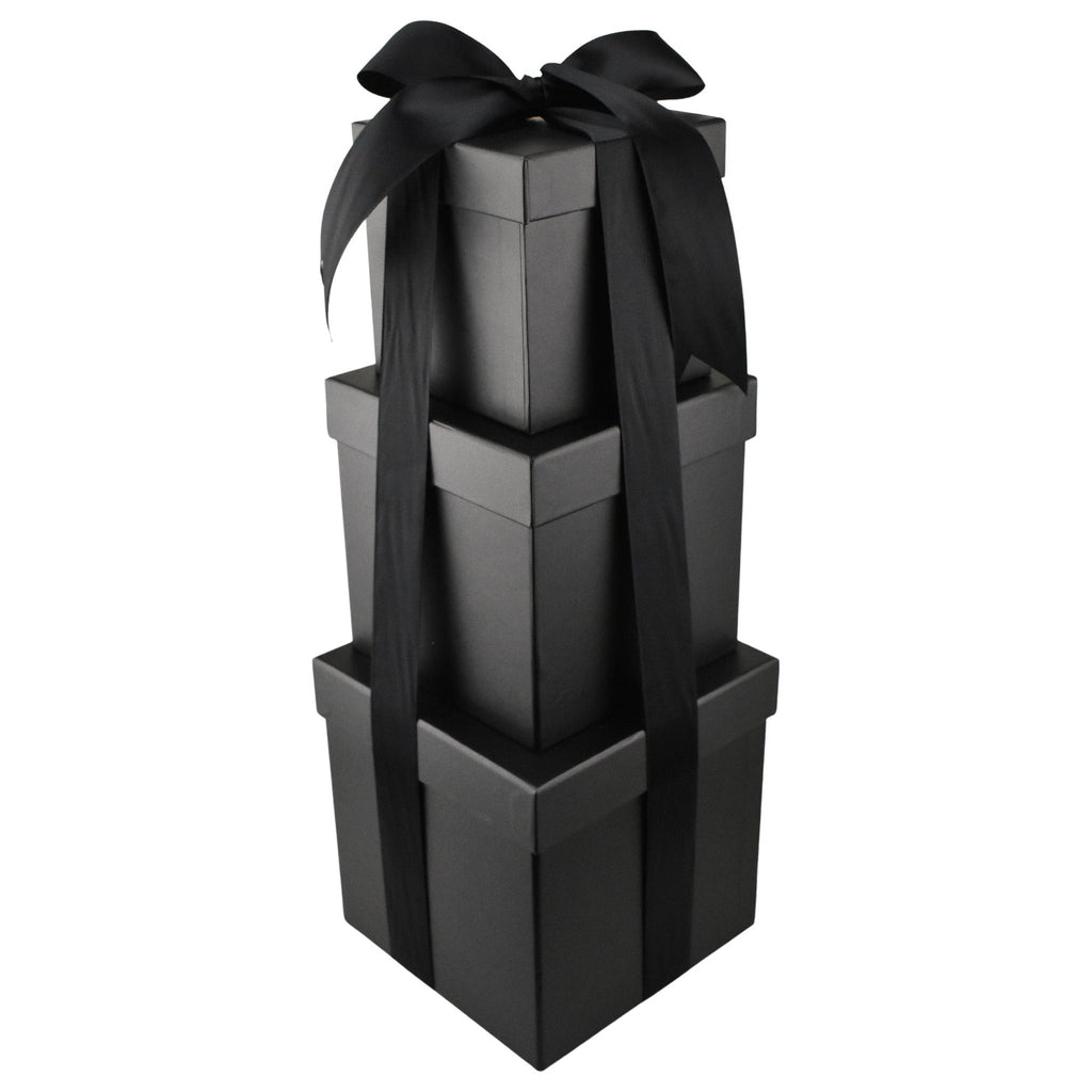 Nested Square Gift Boxes, Black, 5-inch, 6-inch, 7-inch, 3-piece, 1.5-inch Satin Ribbon