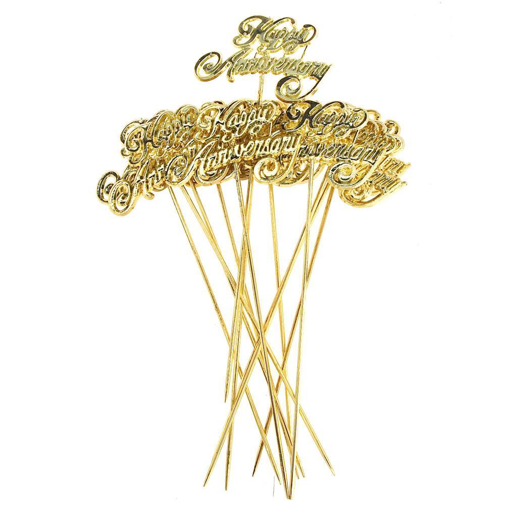 Plastic Chrome "Happy Anniversary" Pick, 5-Inch, 12 Count