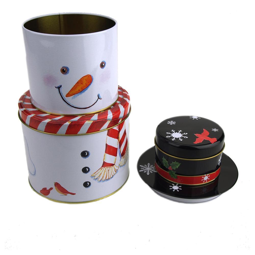 3-Tier Snowman Christmas Tin Box, 10-1/2-Inch