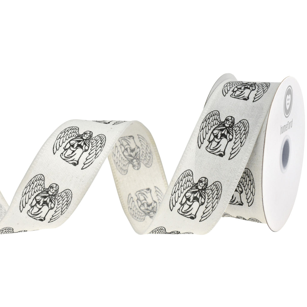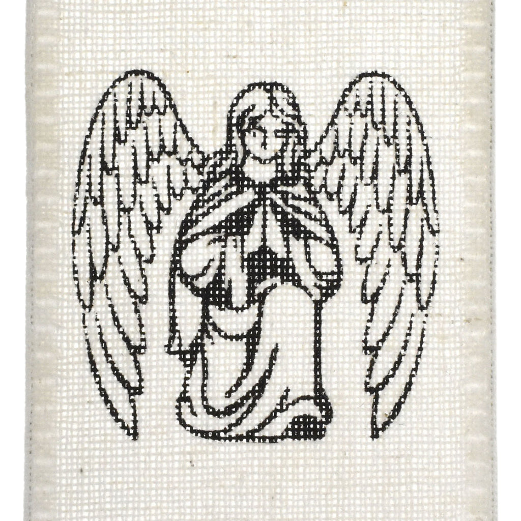 Christmas Angel Faux Linen Wired Ribbon, 1-1/2-inch, 10-yard, Ivory