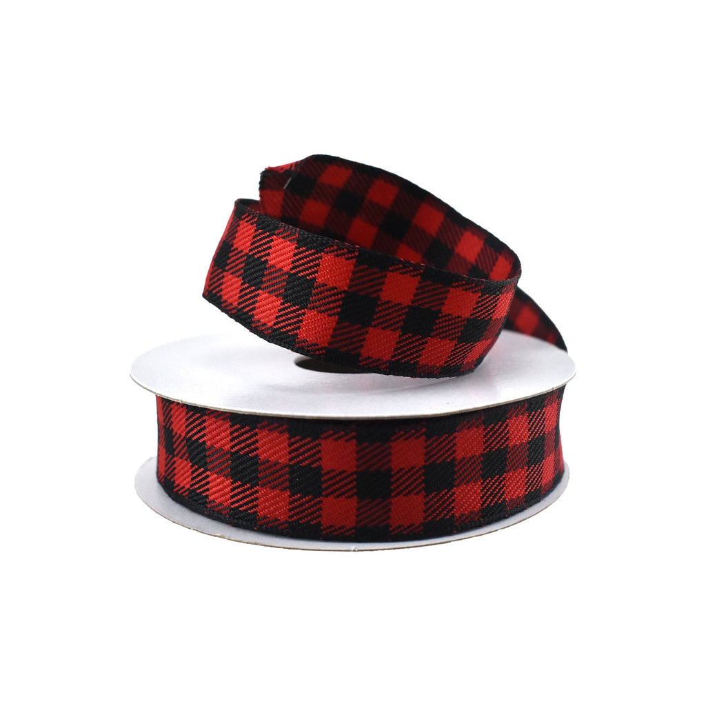 Christmas Buffalo Plaid Checkered Wired Ribbon, 7/8-Inch, 10-Yard