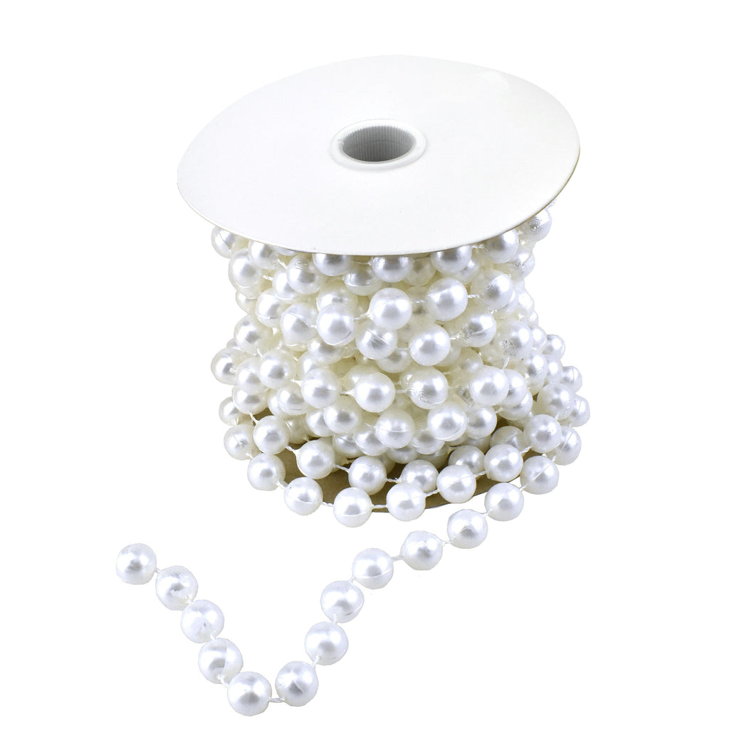Embellish your next social gathering with some lovely pearl strands. This acrylic string of pearls adds a elegant finish to your decorations. They can also be used for other DIY projects too. Length: 10 YD Width: .40"