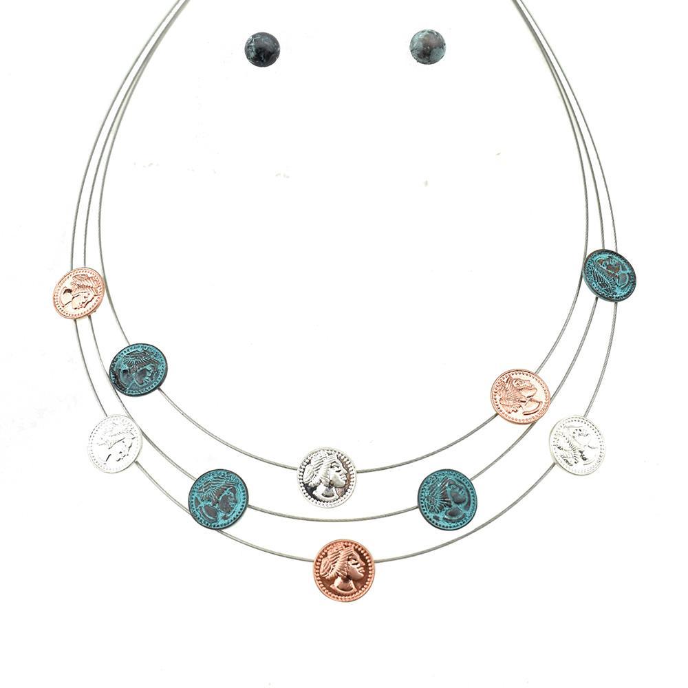 LOVELY NECKLACE SET- This beautiful necklace features coins attached to the fire wire, which makes it look more unique and eye-catching. Pair this necklace with matching earrings.