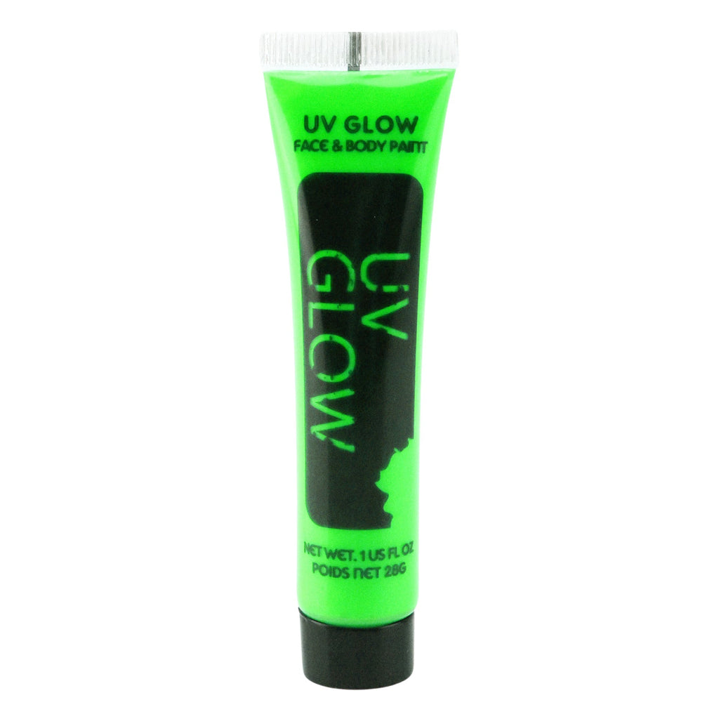 Get ready to shine at your next party with this glow in the dark UV Face Paint! This face paint is body safe, water based and easy to wash off. The paint is designed to glow under a black light but can still be seen by those without a black light around as well. Tube: 1 oz