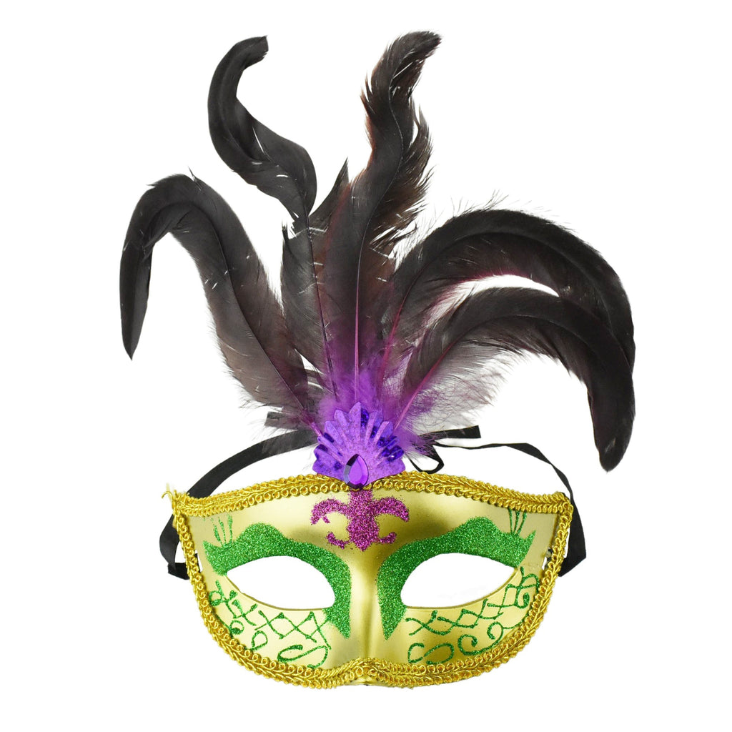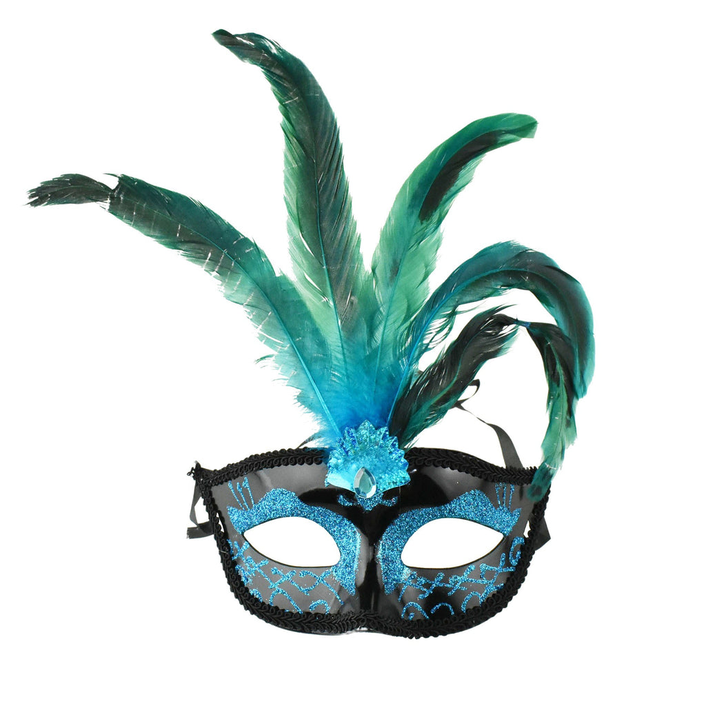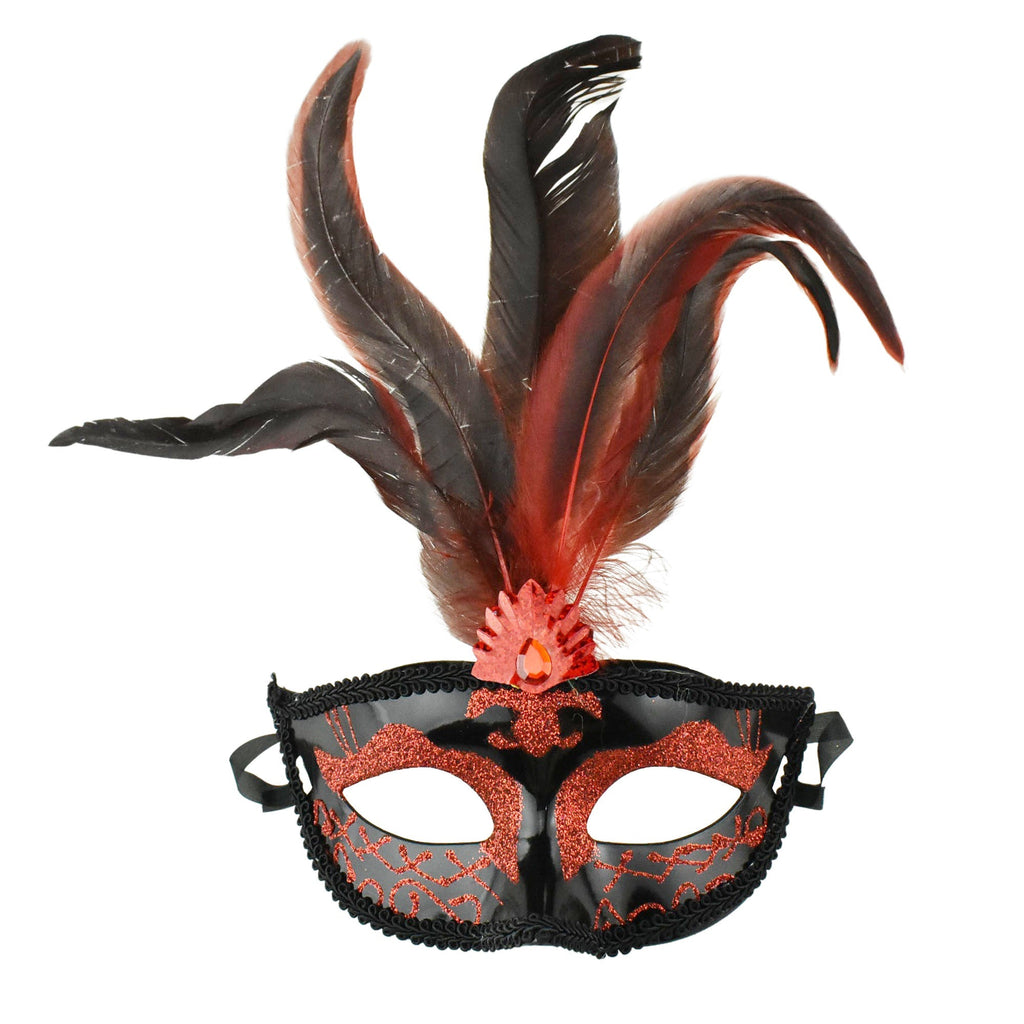 Fancy Feather Masquerade Mask, 7-Inch x 3-1/4-Inch