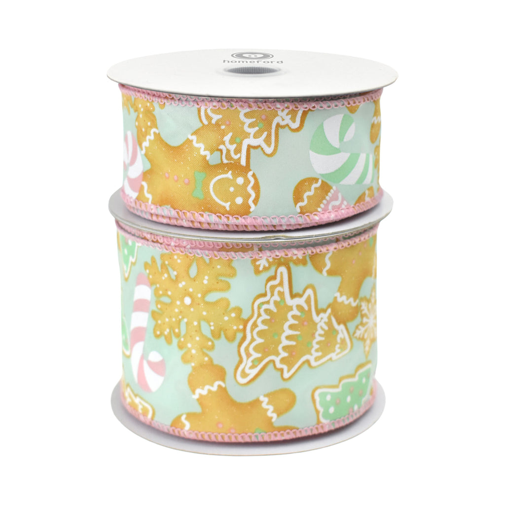 Sweeten up your holiday décor with our Christmas Gingerbread Cookies Satin Wired Ribbon. Featuring a smooth pastel satin finish decorated with charming gingerbread cookie designs, this ribbon brings a delightful, festive touch to any project. The wired edges make it easy to shape into perfect bows, loops, and accents that hold their form, making it ideal for wreaths, garlands, Christmas trees, and gift wrapping.