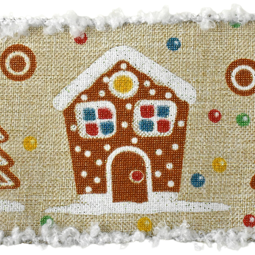 Christmas Gingerbread Houses Frizette Wired Ribbon, 2-1/2-inch, 10-yard