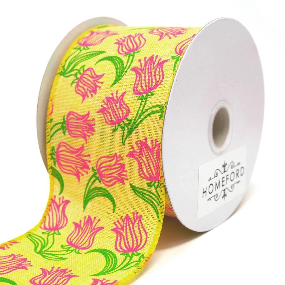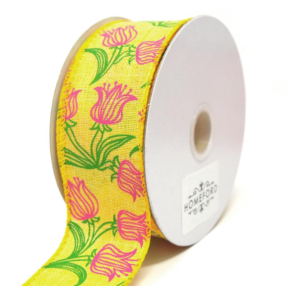 Spring is in the air! Decorate your spring celebrations with these beautiful tulip print linen ribbons. The bright colors are sure to make all your projects pop! Ribbon has wired edges for easier shaping. Use for all your arts & crafts, scrap-booking ideas, wreaths, or floral arrangements.