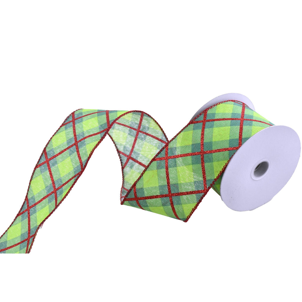 Christmas Georgina Plaid Red Trim Wired Ribbon, 2-1/2-Inch, 10-Yard - Green