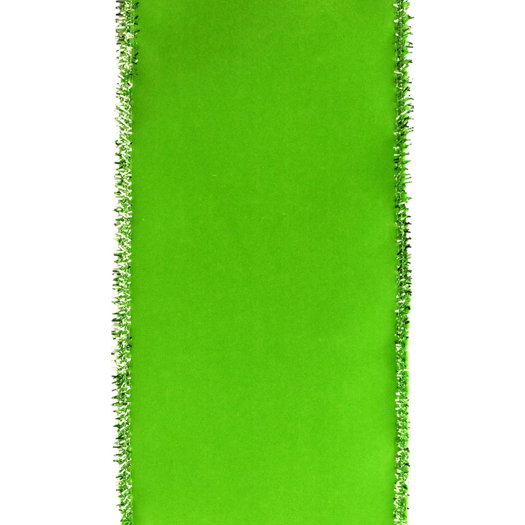 Christmas Velvet Tinsel Edge Wired Ribbon, 2-1/2-Inch, 10-Yard - Lime Green