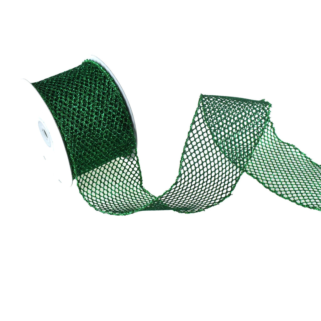 Grand Glittered Net Wired Ribbon, 2-1/2-Inch 10-Yard - Hunter Green