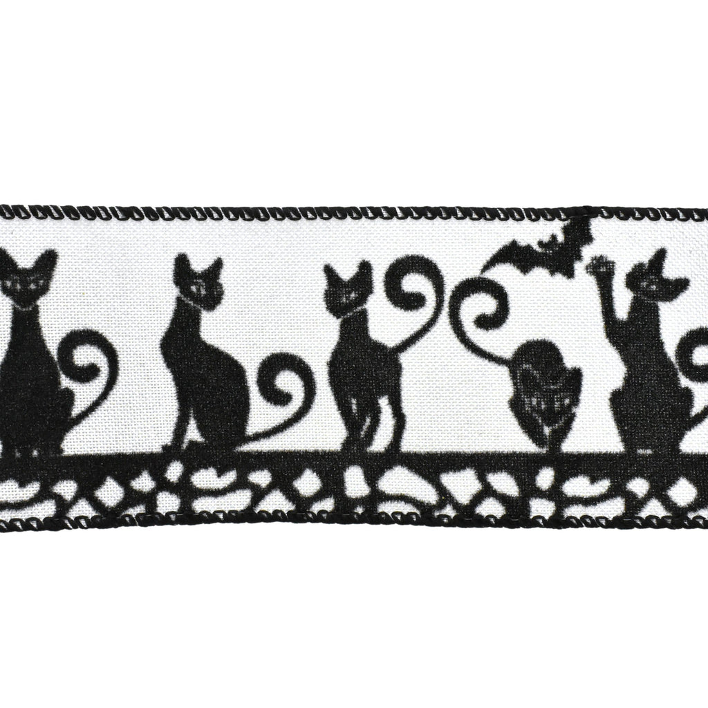 Flocked Halloween Cats Faux Linen Wired Ribbon, 2-1/2-Inch, 10-Yard