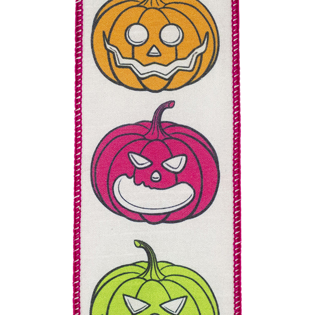 Halloween Colorful Jack-O-Lantern Dupioni Wired Ribbon, 2-1/2-inch, 10-yard