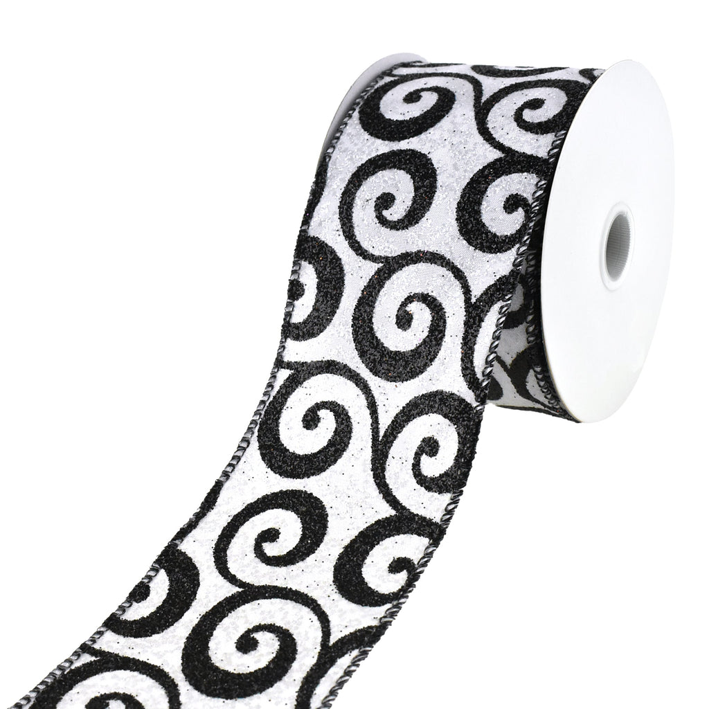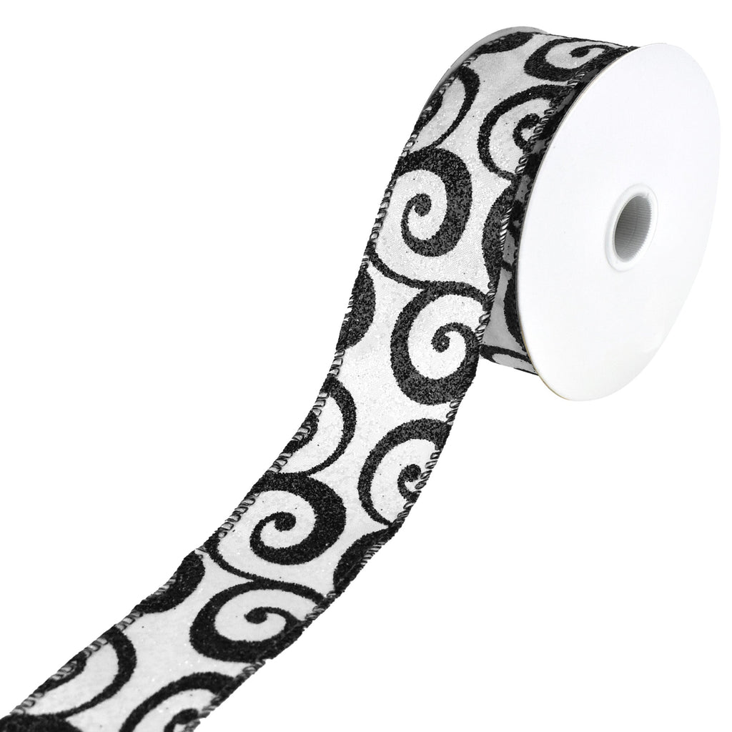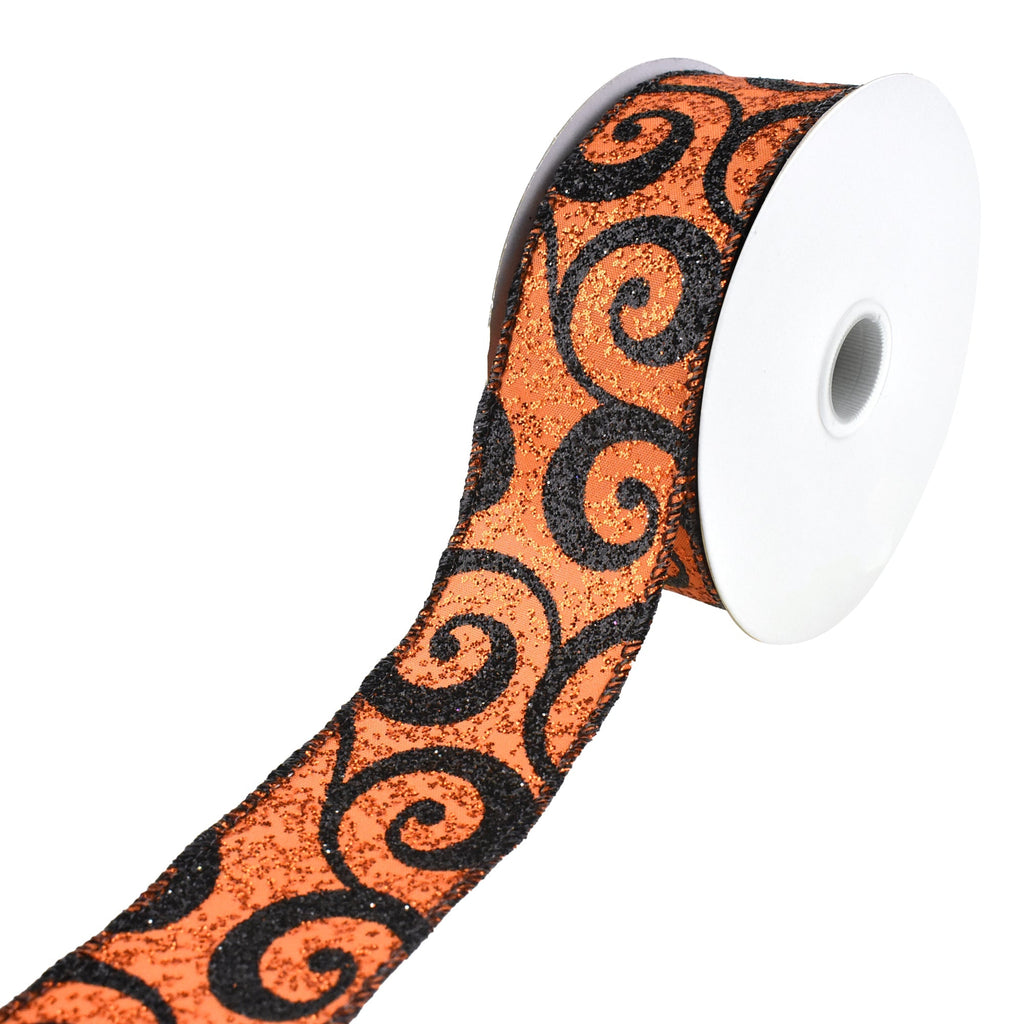 Halloween Glitter Swirls Wired Ribbon, 10-Yard