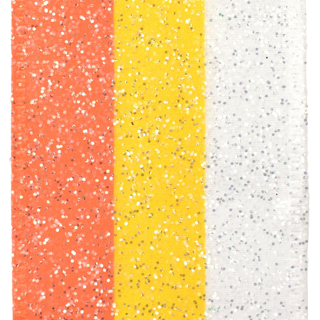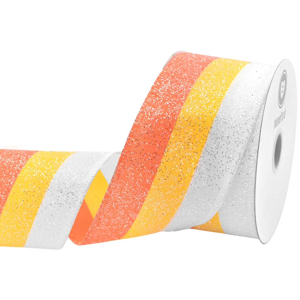 Halloween Glittered Candy Corn Stripes Wired Ribbon, 10-yard