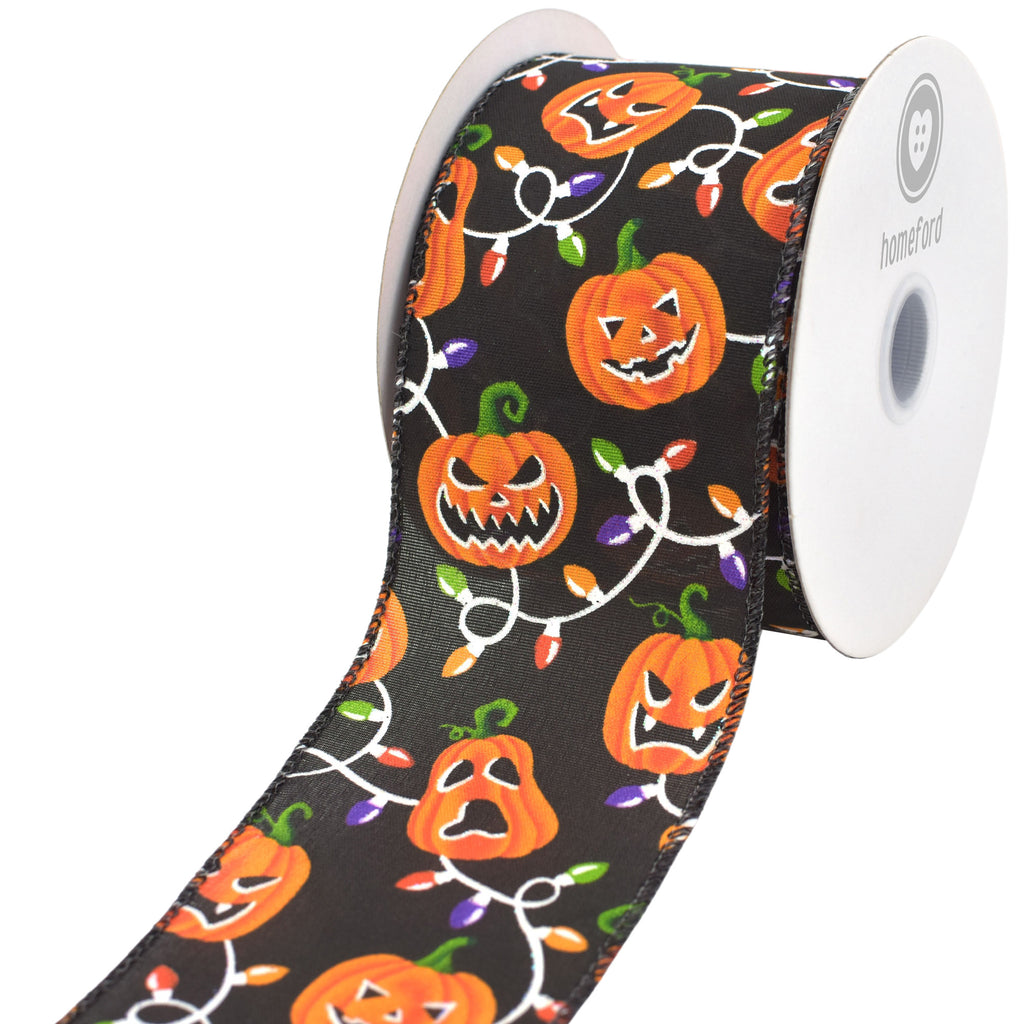 Halloween Jack-O'-Lantern Lights Stain Ribbon, 10-yard