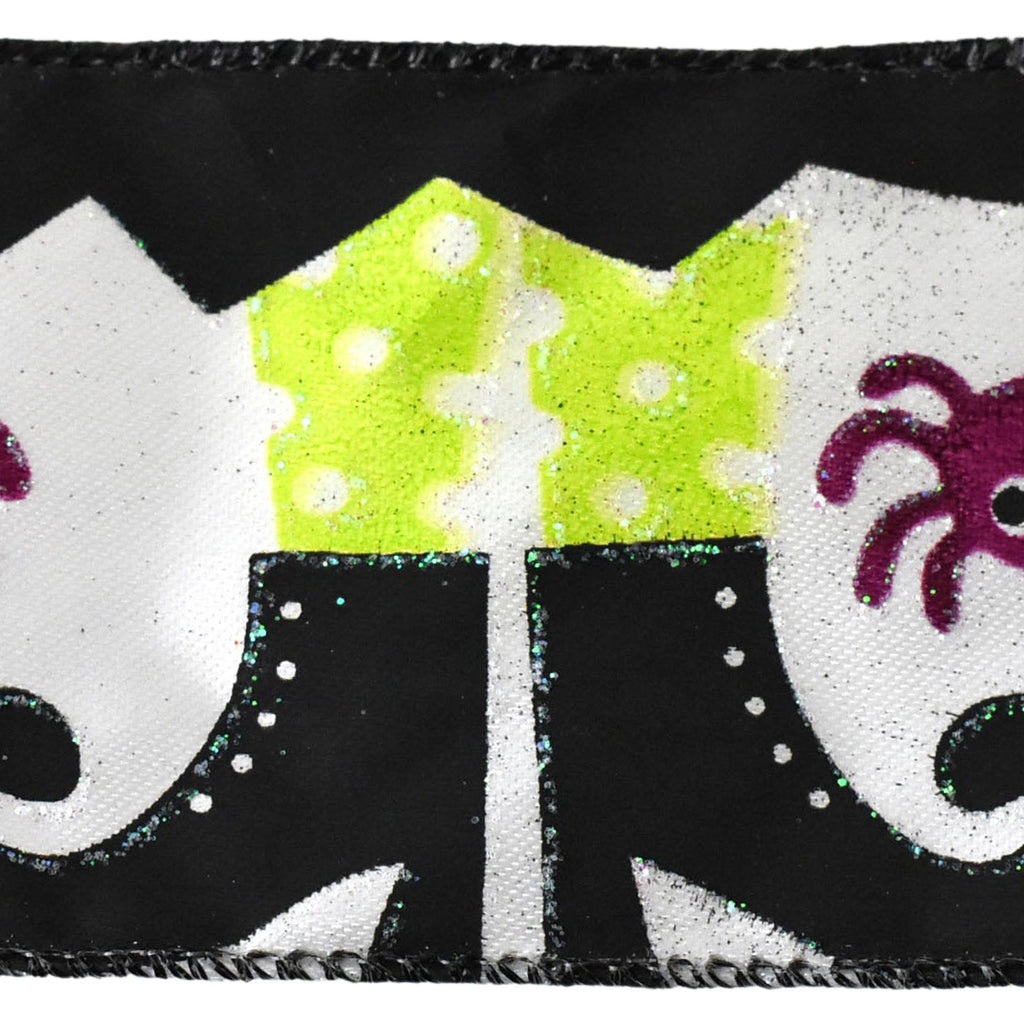 Halloween Witch Legs and Spiders Satin Wired Ribbon, 2-1/2-inch, 10-yard