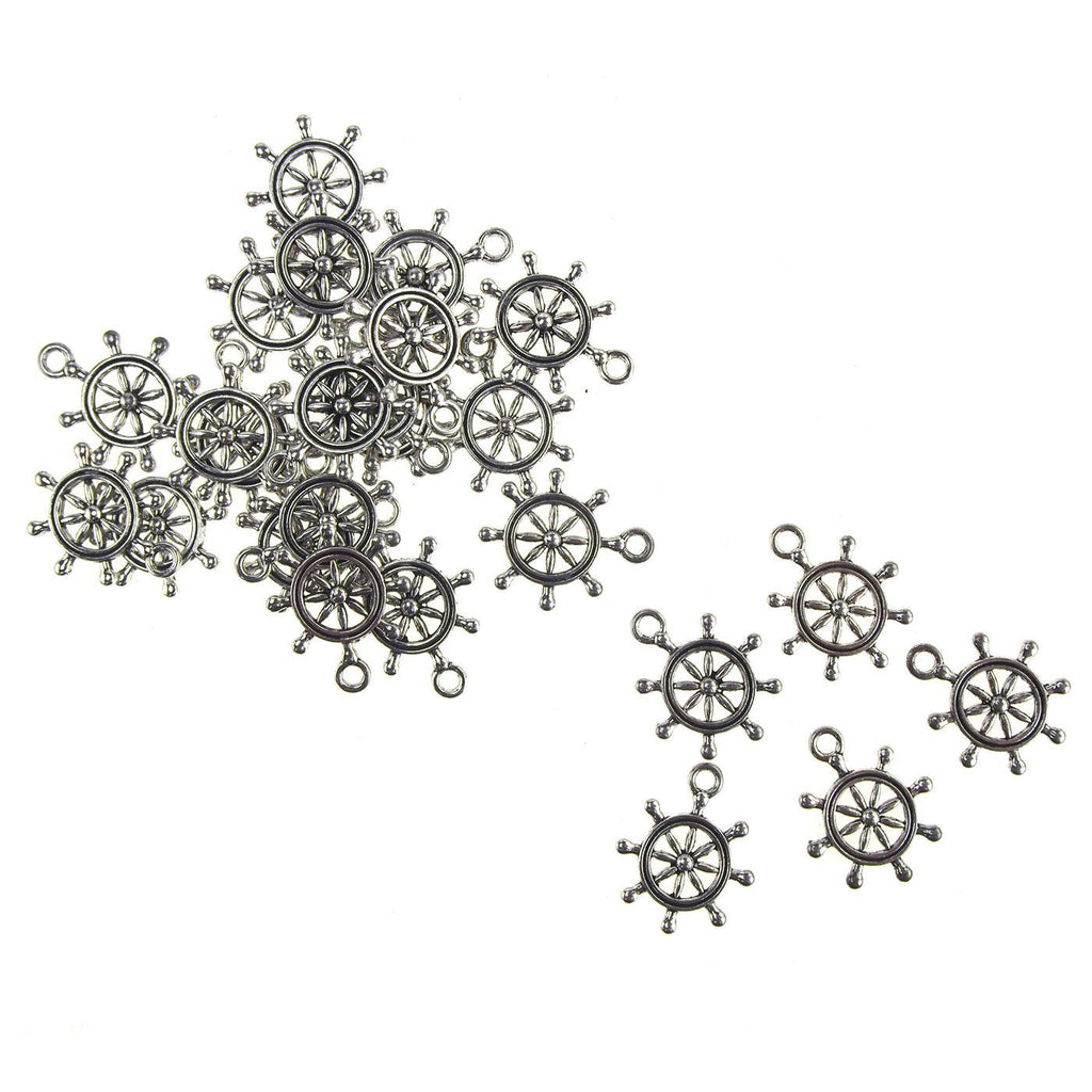 Metal Nautical Helm Ship Wheel Charms, 5/8-Inch, 25-Count