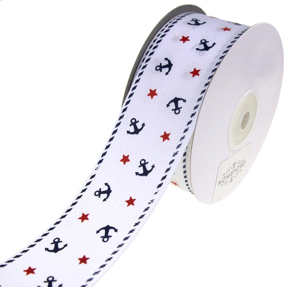 Nautical Anchor and Star Grosgrain Ribbon, 1-1/2-Inch, 25-Yard