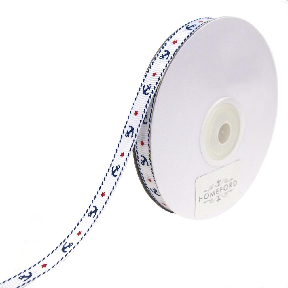 Nautical Anchor and Star Grosgrain Ribbon, 3/8-Inch, 25-Yard