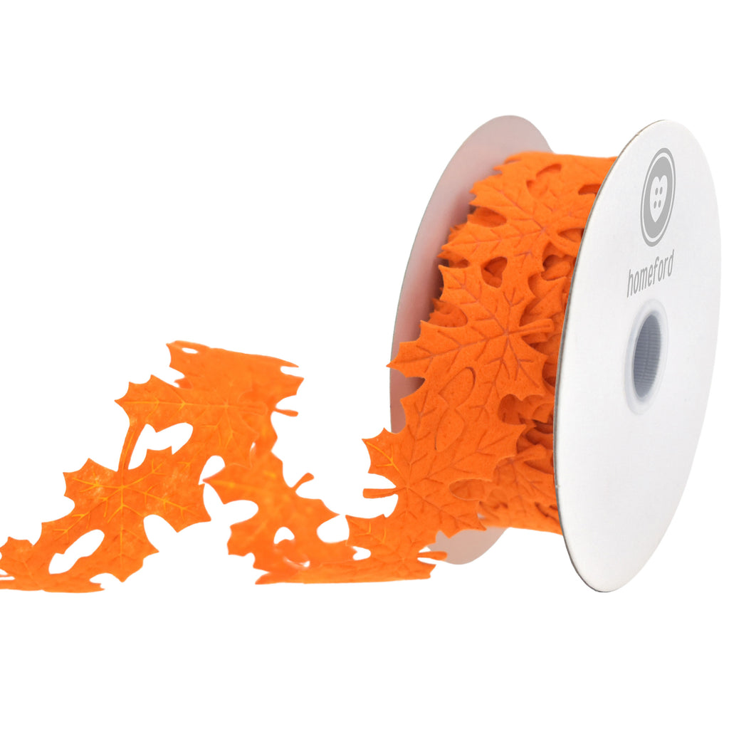 Fall Leaves Felt Cutout Ribbon, Orange, 1-1/2-inch, 10-yard