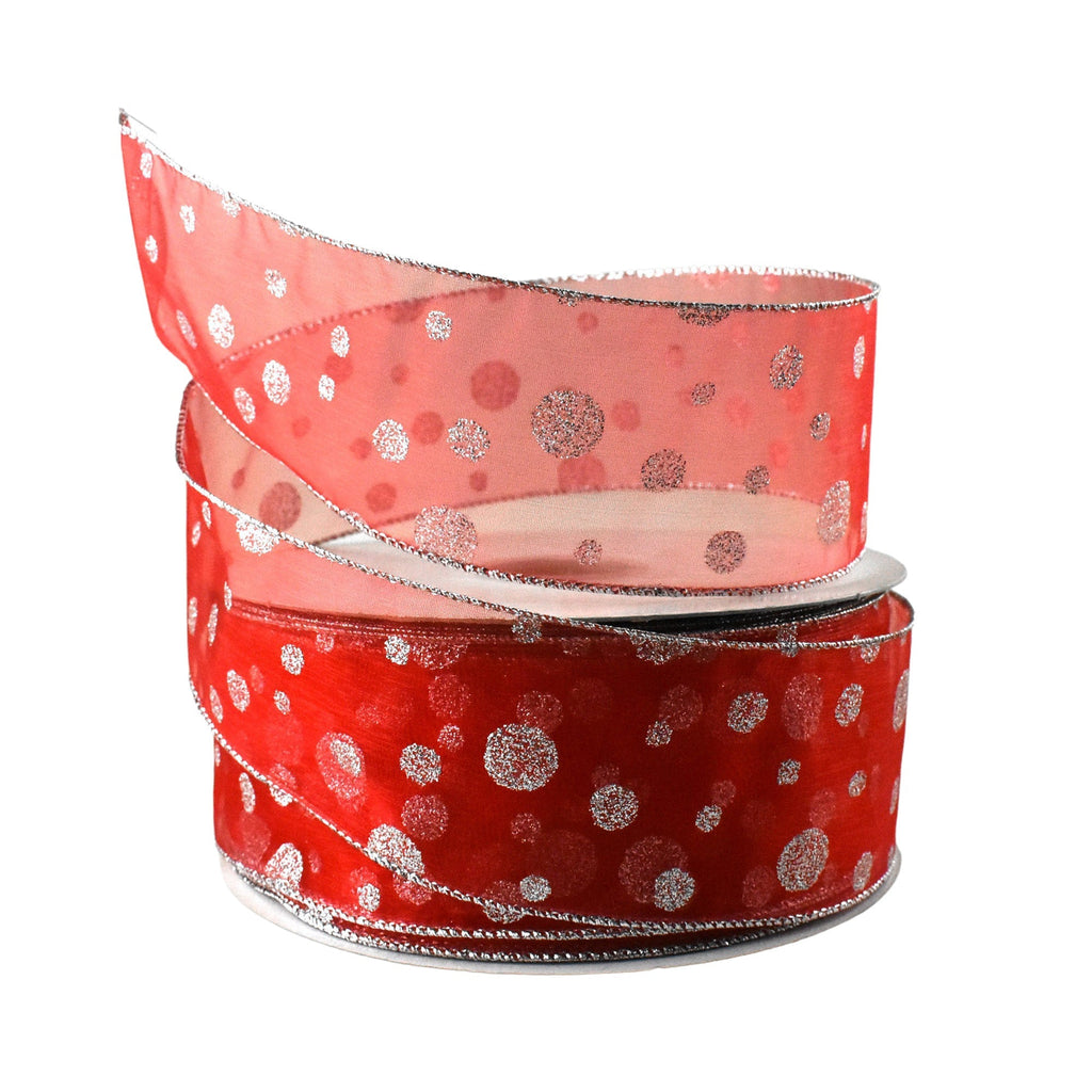 This sheer organza ribbon is the perfect embellishment for your DIY projects, gift wrapping or holiday decor! The gorgeous, glittered polka dots add an alluring sparkle to any project. This wired ribbon is quickly and easily shaped into bows, flowers and more! Note: Contains wire Length: 50 yds Width: 2.5"