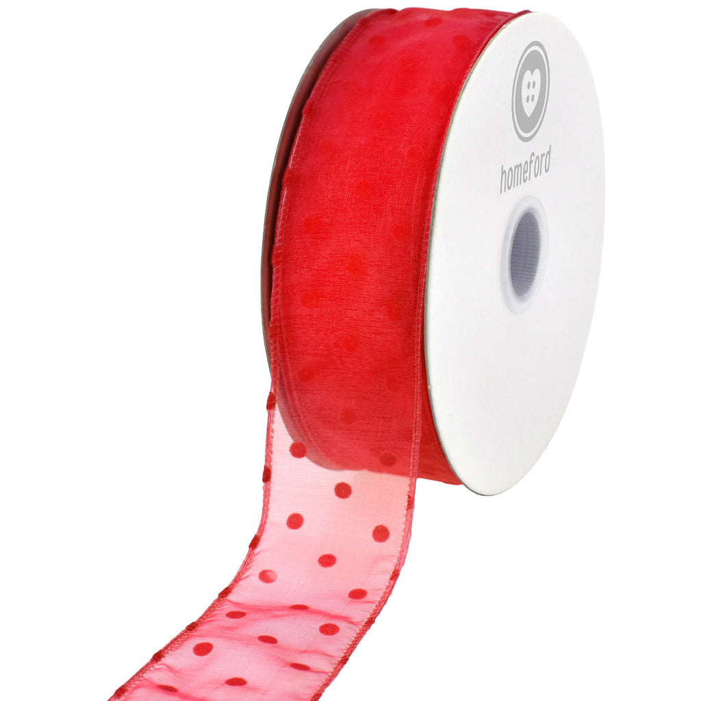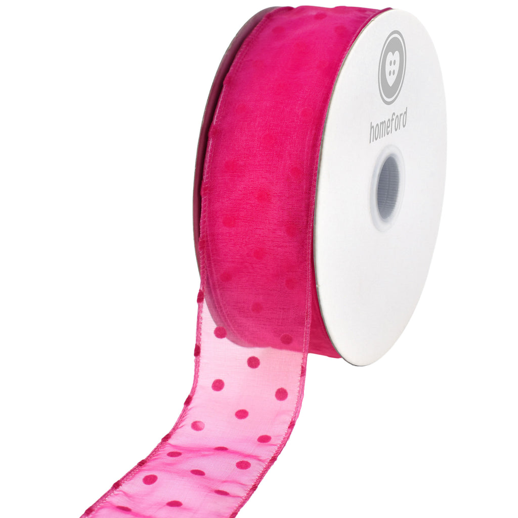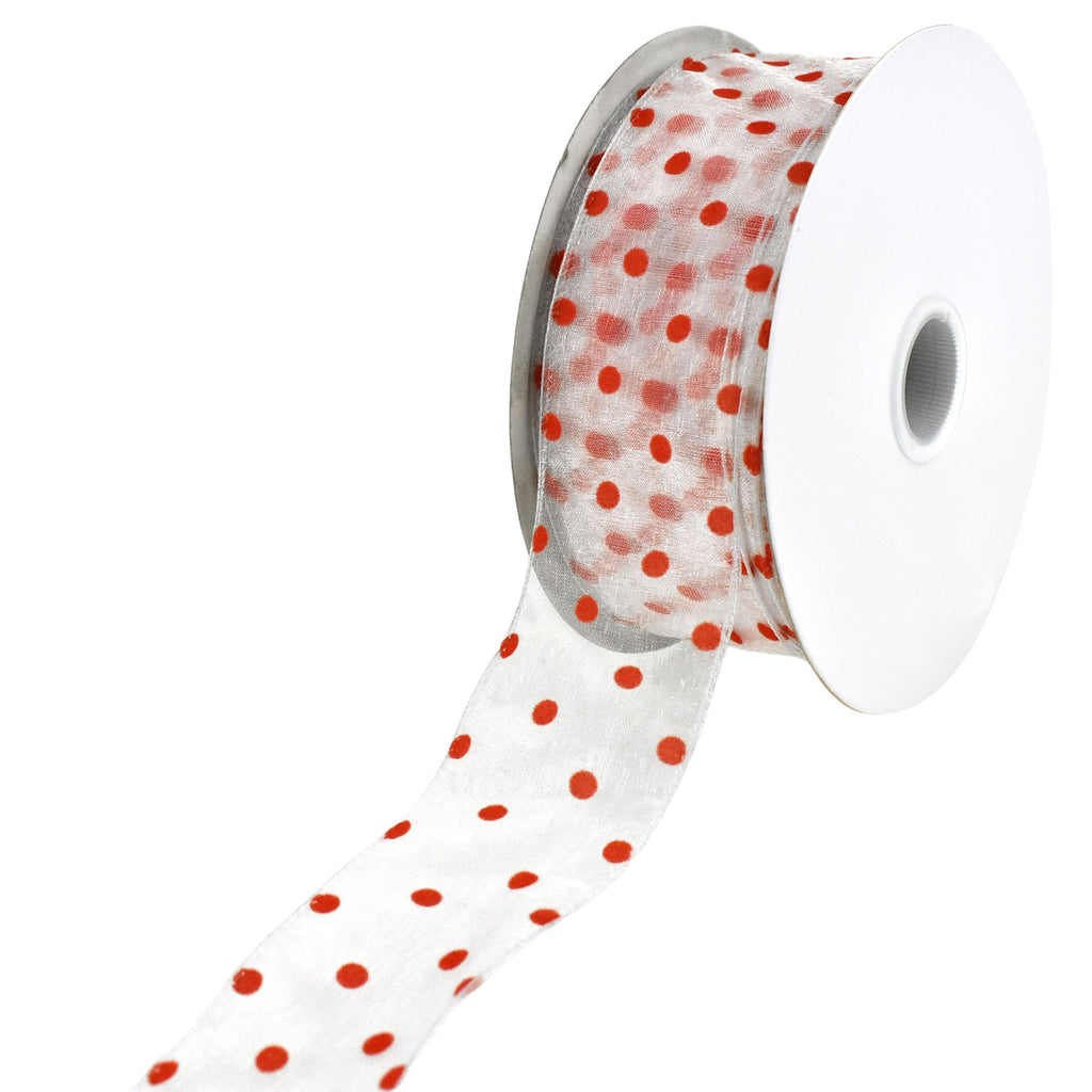 Organza Polka Dots Wired Ribbon, 2-Inch, 50-Yard