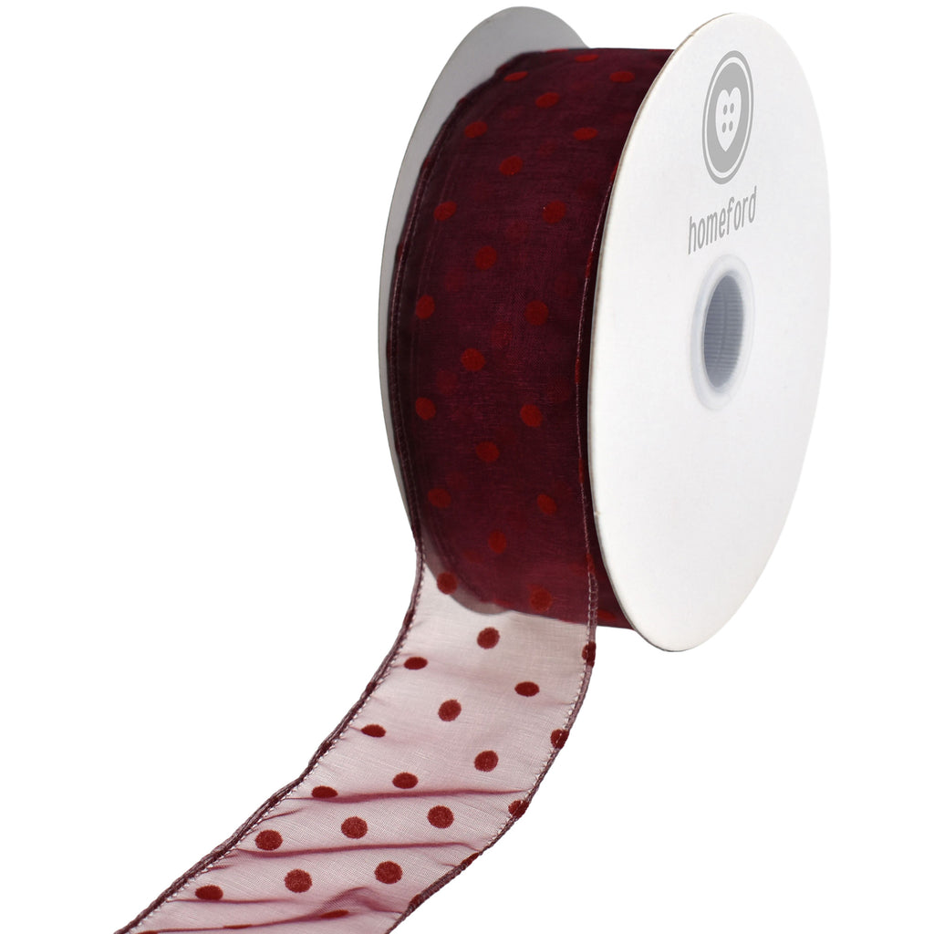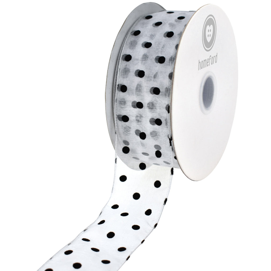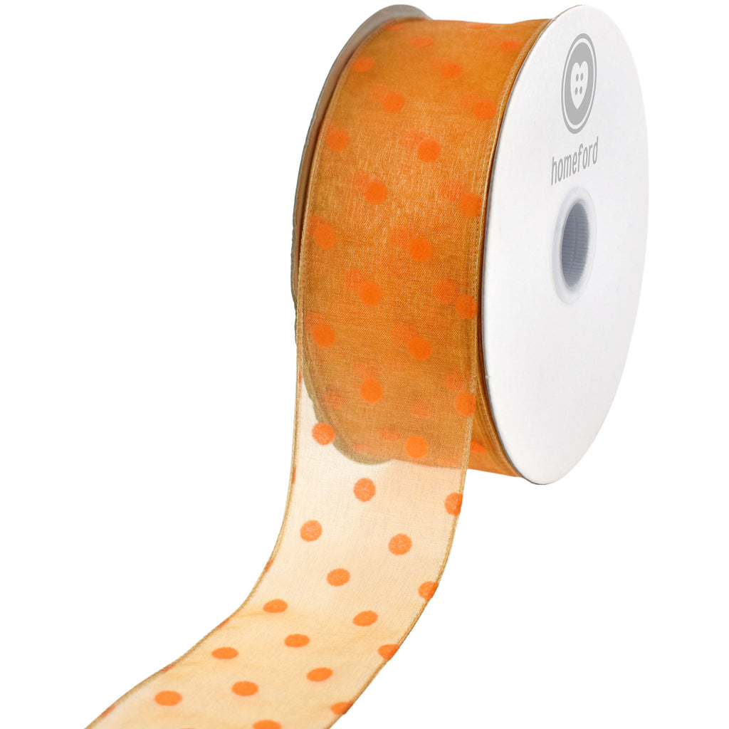 Organza Polka Dots Wired Ribbon, 2-Inch, 50-Yard