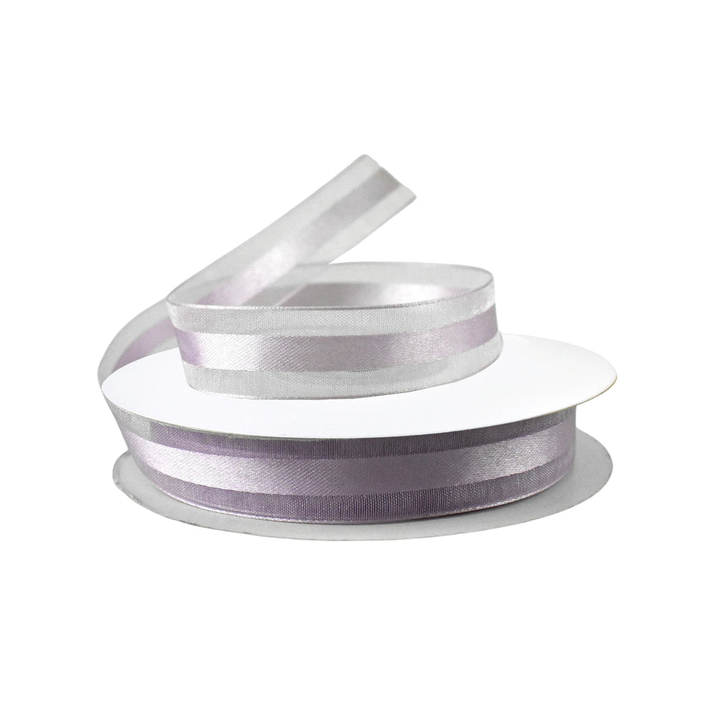 This ribbon adds the perfect finishing touch to floral arrangements and crafts. Features distinct satin stripes on the top and bottom edges and sheer organza ribbon in the center. It's perfect for wrapping gifts, adding an elegant bow to hand-crafted wreaths, and decorating mantels, cross streets and more. Length: 25 yds Width: 0.625"