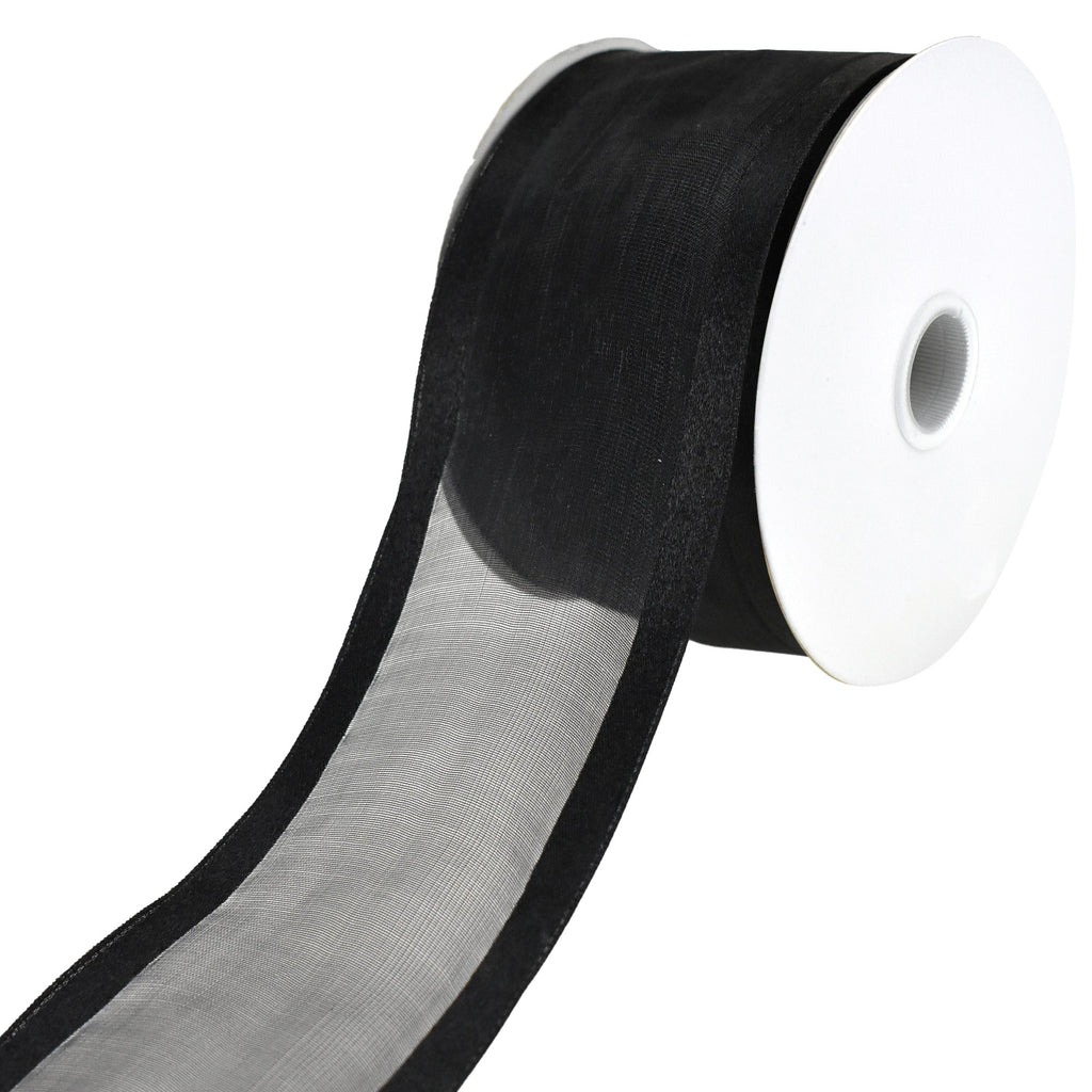 Sheer Organza with Satin Wired Edge Ribbon, 2-1/2-inch, 25-yard