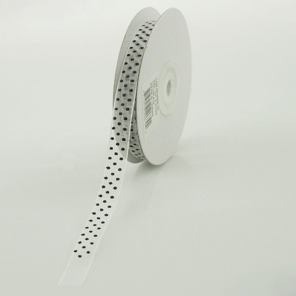 Swiss Polka Dots Sheer Organza Ribbon, 3/8-inch, 25-yard