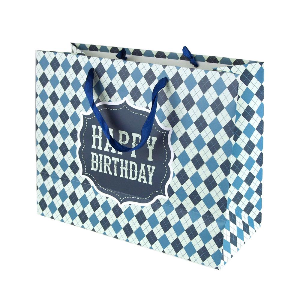 Argyle Checkered Design Paper Gift Bags, 10-inch
