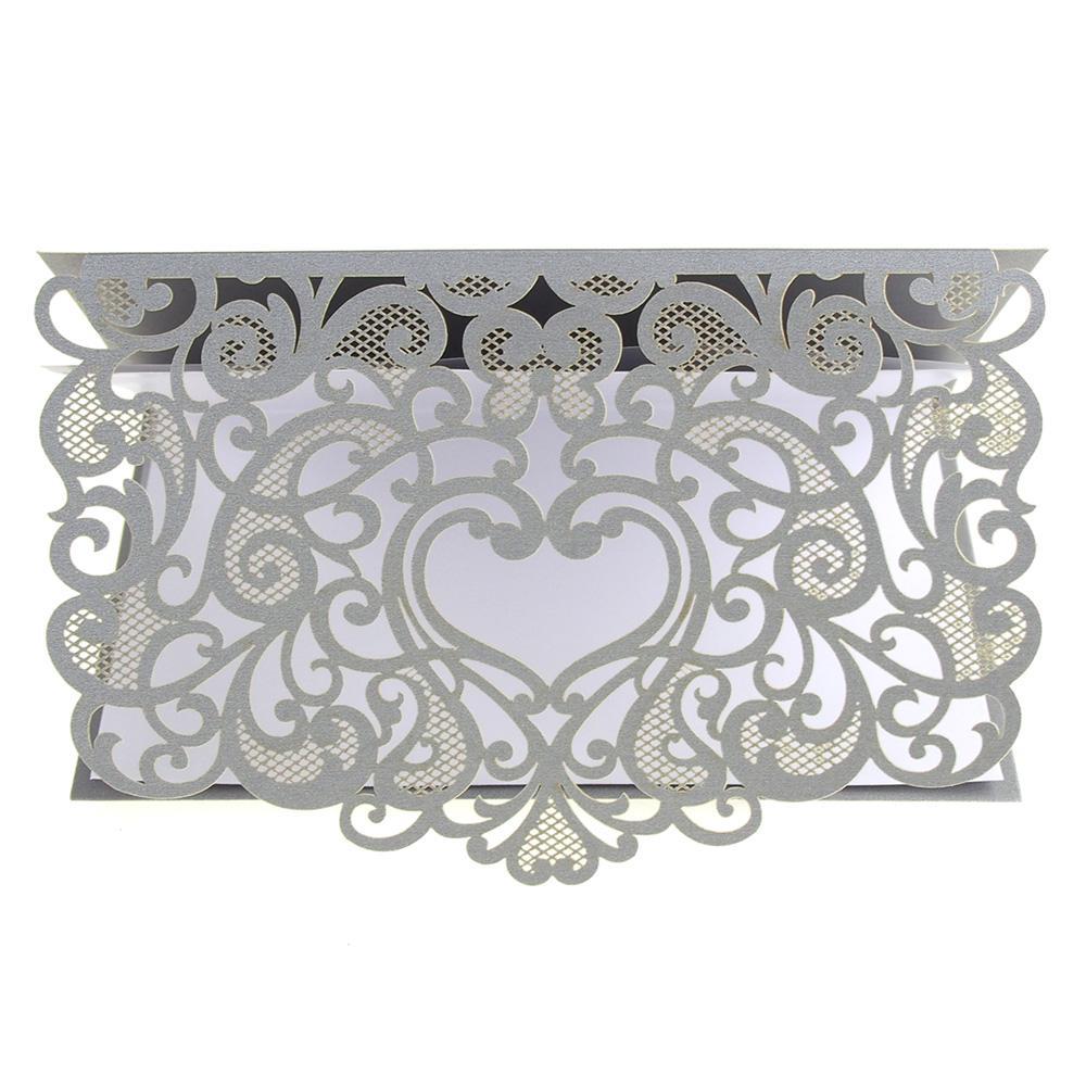 Paper Rectangular Laser-Cut Pearlescent Scroll Swirl Invitations with Heart, 7-1/4-Inch, 8 count